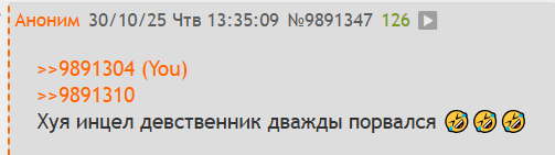 >>9893994 >>9894014 Ну чё так обосрался то? Тебя за язык никто не тянул, никто не заставлял в тупое отрицалово уходить. Так почему же продолжаешь глупо копротивляться очевидному?