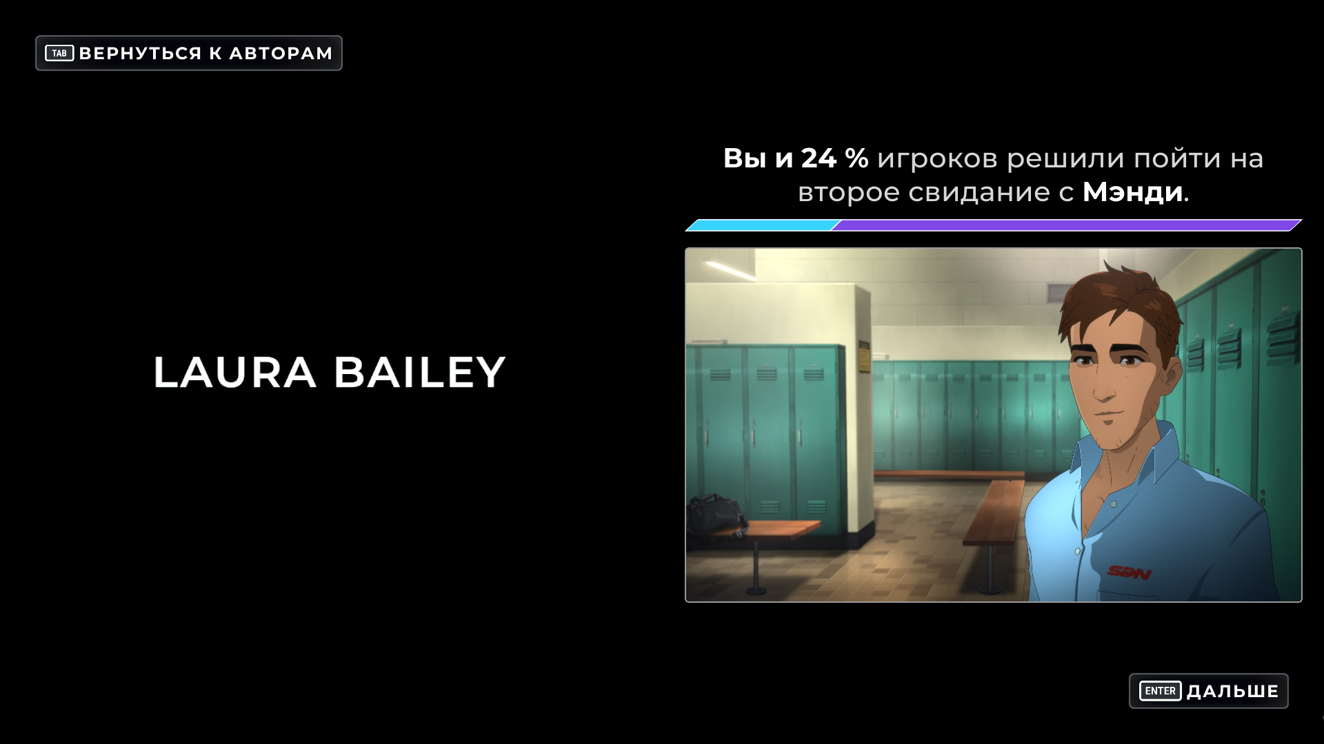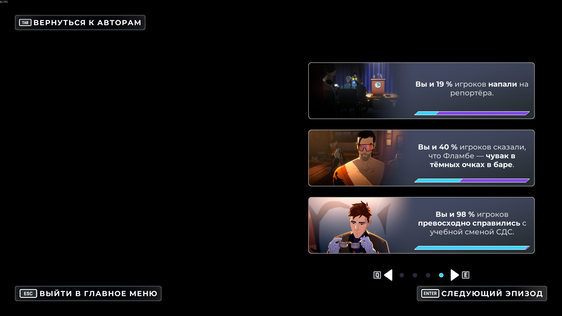 Кстати тут уже предполагали что проценты сделавших такие же выборы игра показывает от фонаря, подтверждаю. Играл с выключенным интернетом, похуй, игра пишет эту херню все равно, хотя данные явно брать неоткуда.