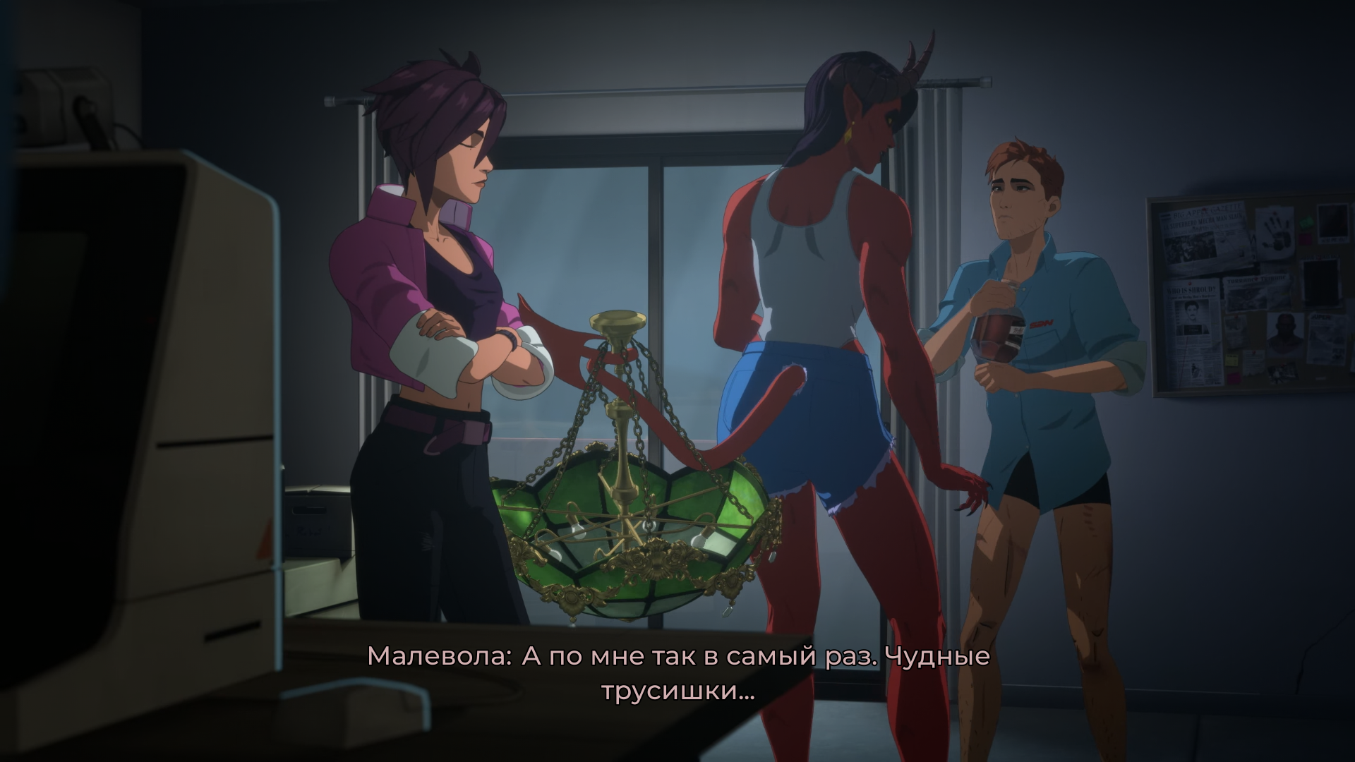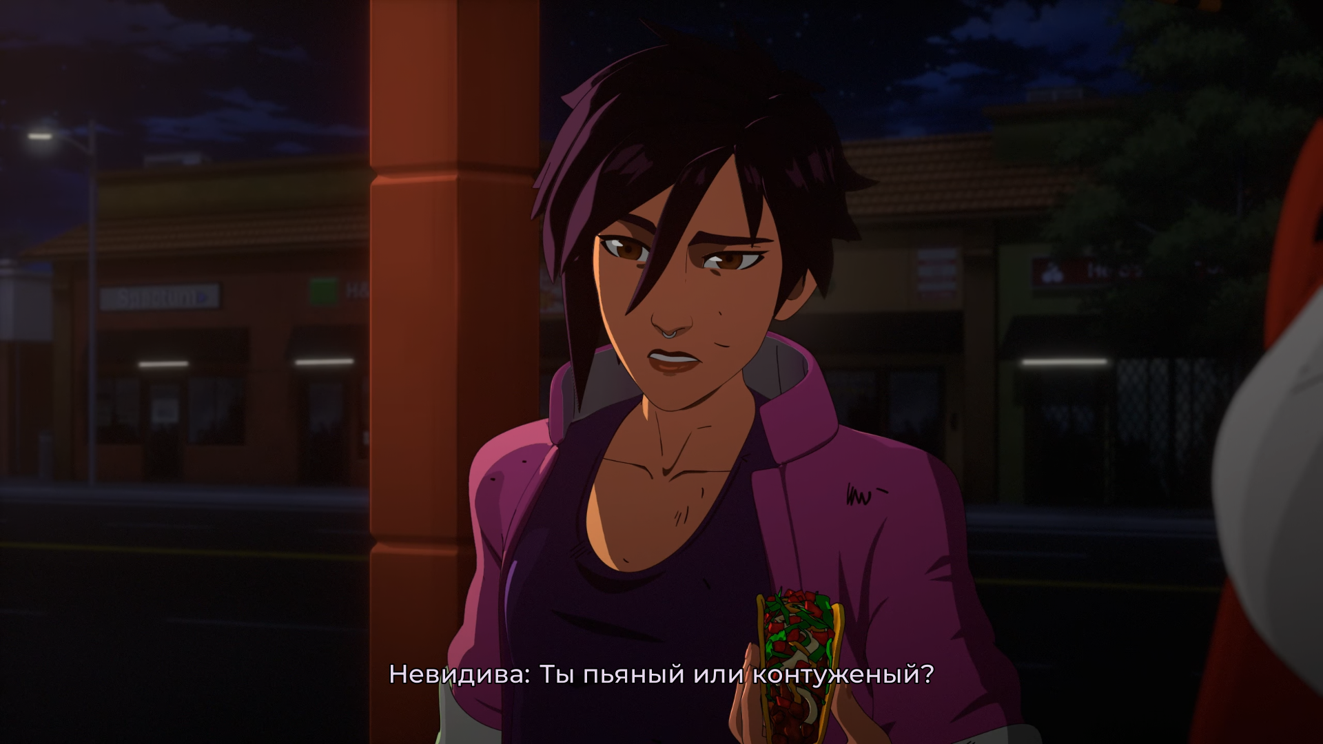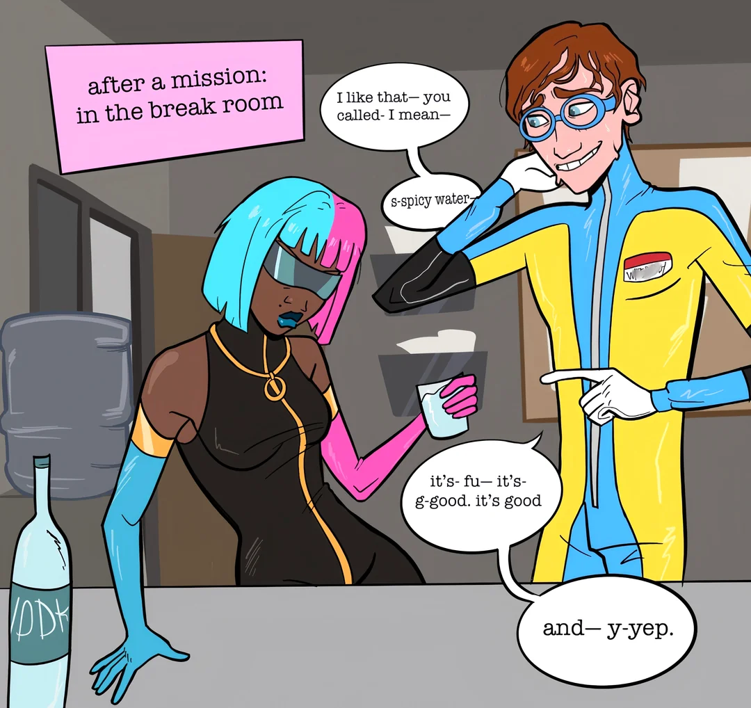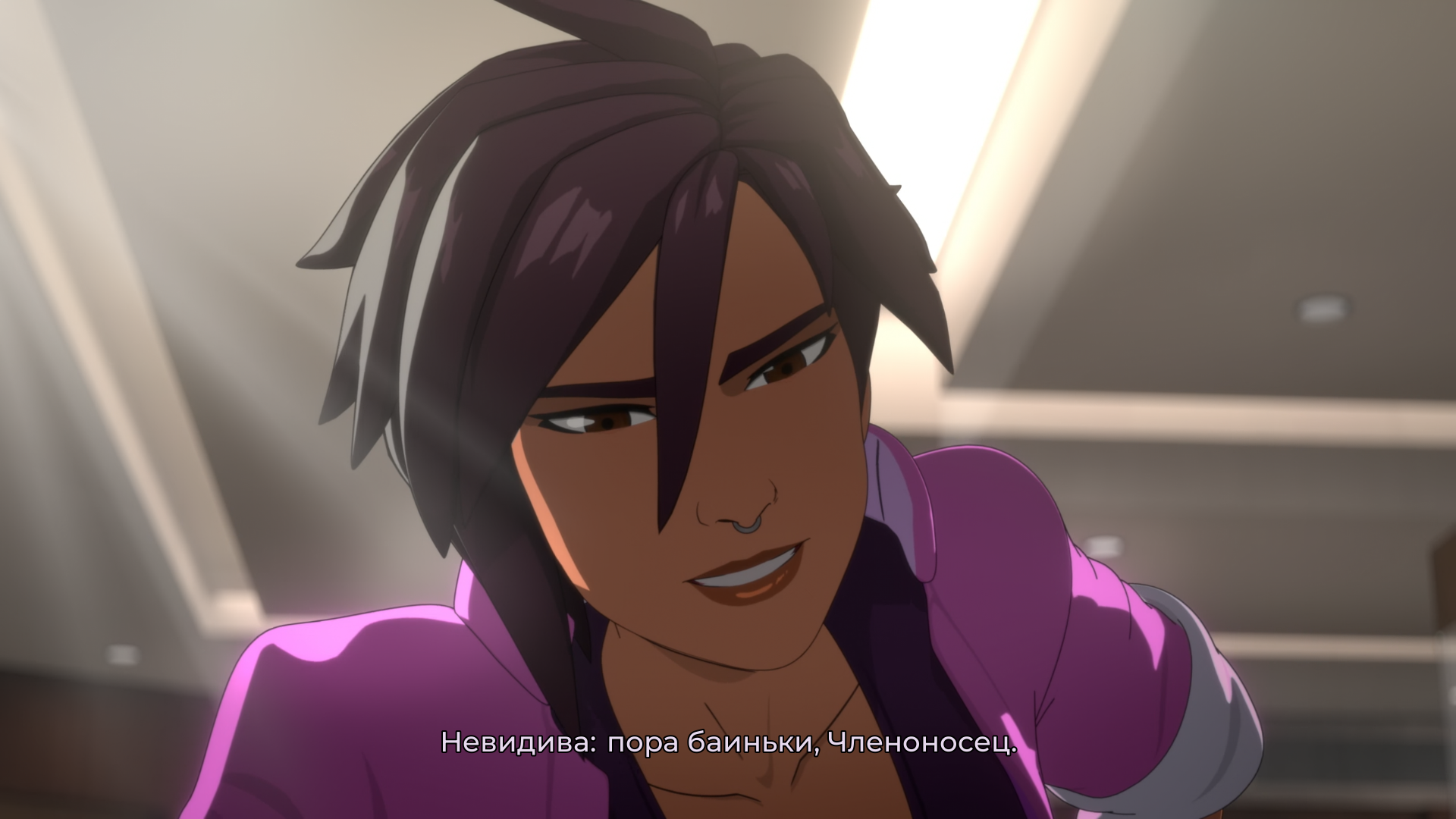 Я, кстати, немного спизданул - симпатию Инвизипися проявляет ещё во втором эпизоде: оставляет пончик на рабочем месте героя в качестве примирения за то, что вмазала ему(который потом размазывает по клаве из-за обиды). Но это настолько ненавязчивый момент (в отличие от блейзерских гурупикапских мувов), что из головы вылетел.