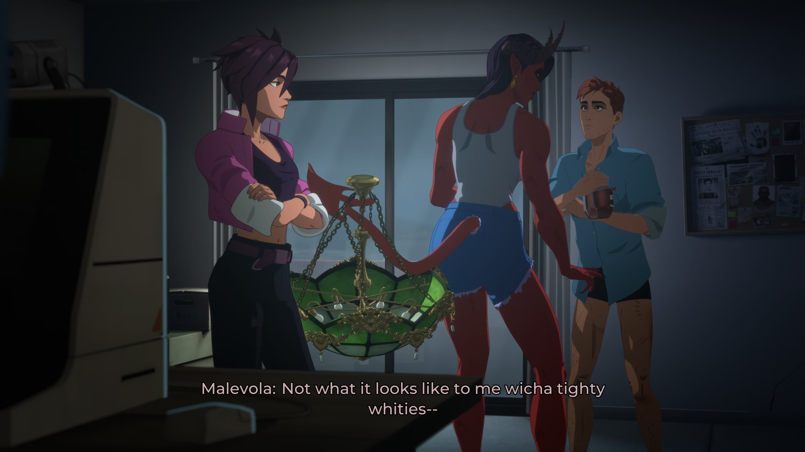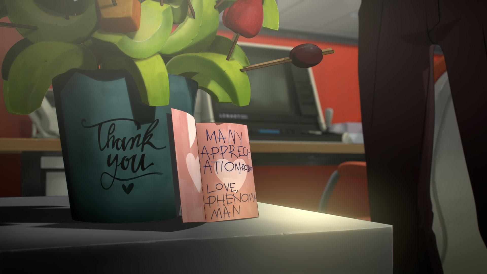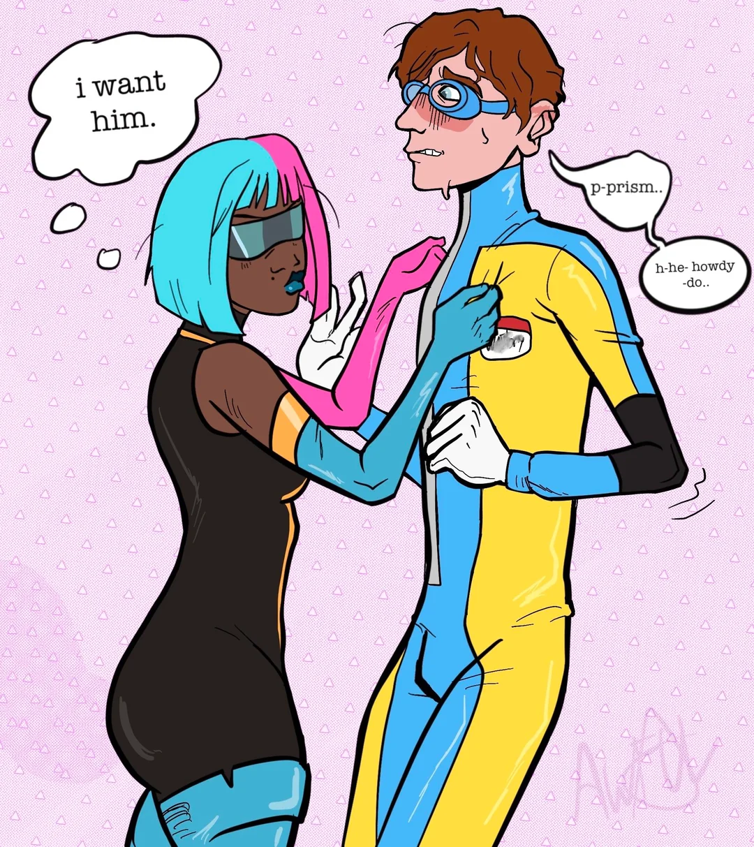 Я, кстати, немного спизданул - симпатию Инвизипися проявляет ещё во втором эпизоде: оставляет пончик на рабочем месте героя в качестве примирения за то, что вмазала ему(который потом размазывает по клаве из-за обиды). Но это настолько ненавязчивый момент (в отличие от блейзерских гурупикапских мувов), что из головы вылетел.