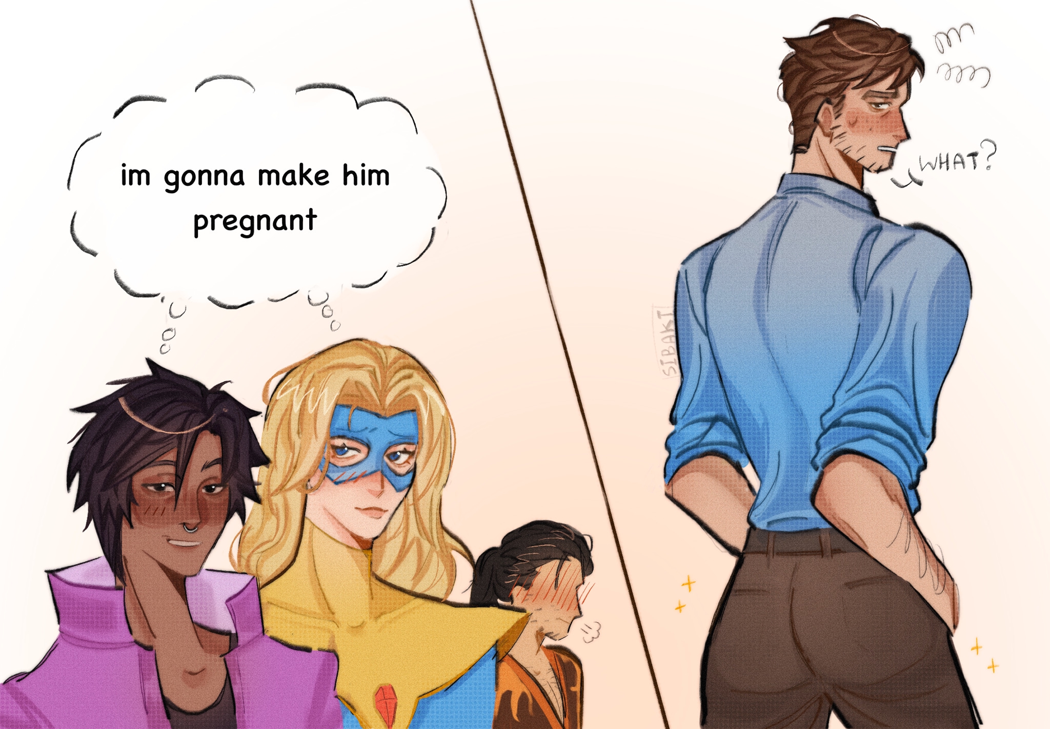 >>9906255 >Белая сука с самого начала что то задумала не очень хорошее, не удивлюсь что она теневой Я хз если честно, так то тут >>9905971 видно что Невидива (бля я понял тип Невидимая Дева нихуя себе я умный какие большие у меня мозги) ревнует. А Блонда я хз чего пытается добиться, я не удивлюсь если у неё как у марвеловского мистера Негатива есть условие перевоплощения из-за которых она должна образно день геройствовать и день злодействовать.