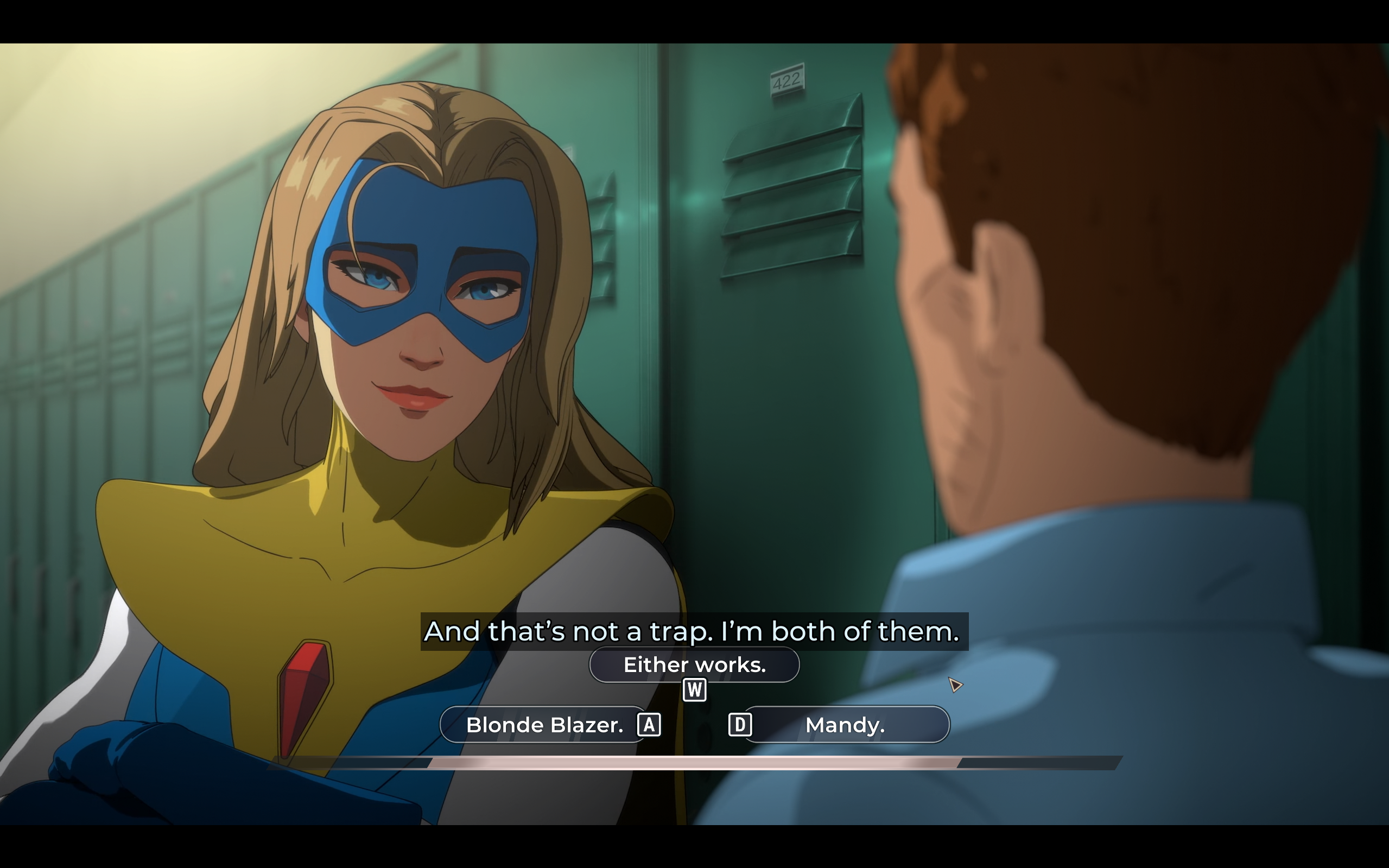 А представляете, выходит последний эпизод, игроки проходят игру и оказывается что они получили плохую концовку. А чтобы увидеть хорошую надо перепройти игру заново на нг+ делая выборы которые появились только на нг+ с последним обновлением. Можно еще обосновать это тем что у кого-то из супергероев есть способности влиять на ход времени как у негра друга гг и поэтому он в конце откатывает гг во времени, но без всех воспоминаний. Поэтому он частично помнит что надо что-то сделать чтобы изменить ход сюжета, а частично нет и поэтому реагирует на все как в первый раз