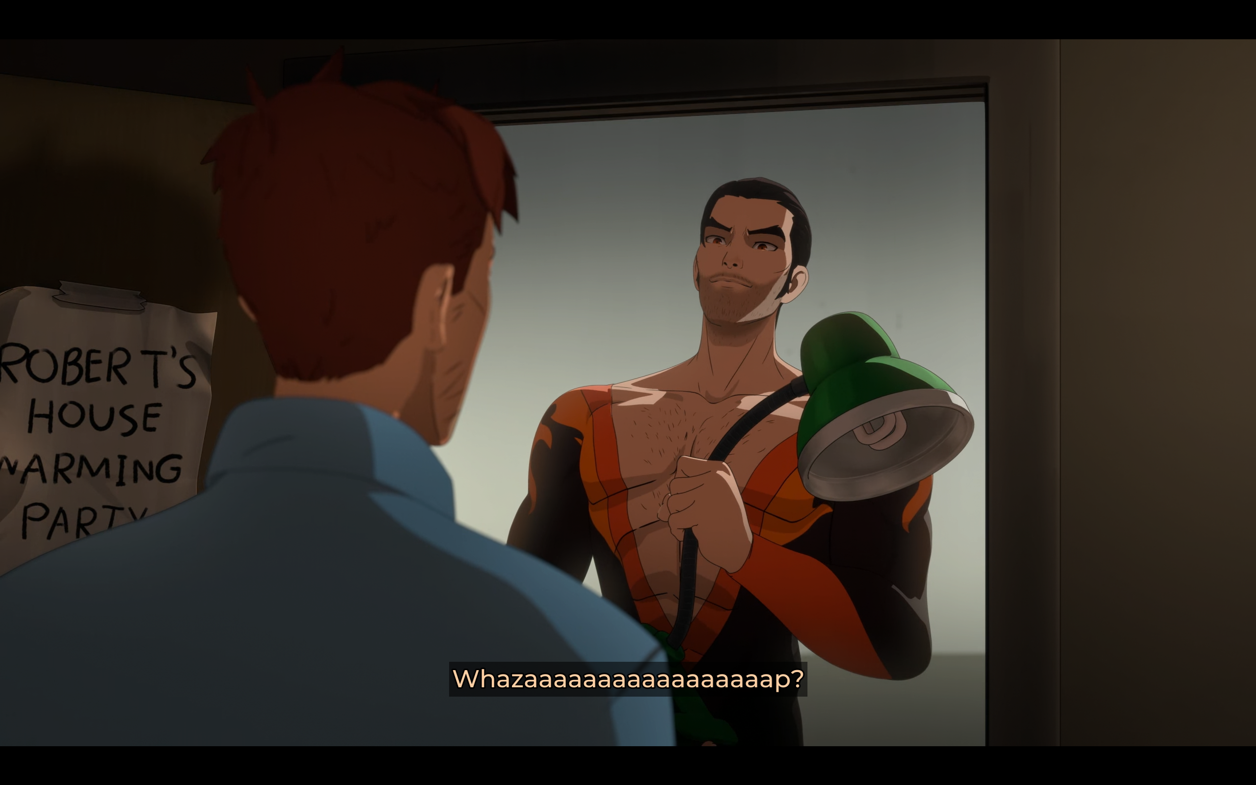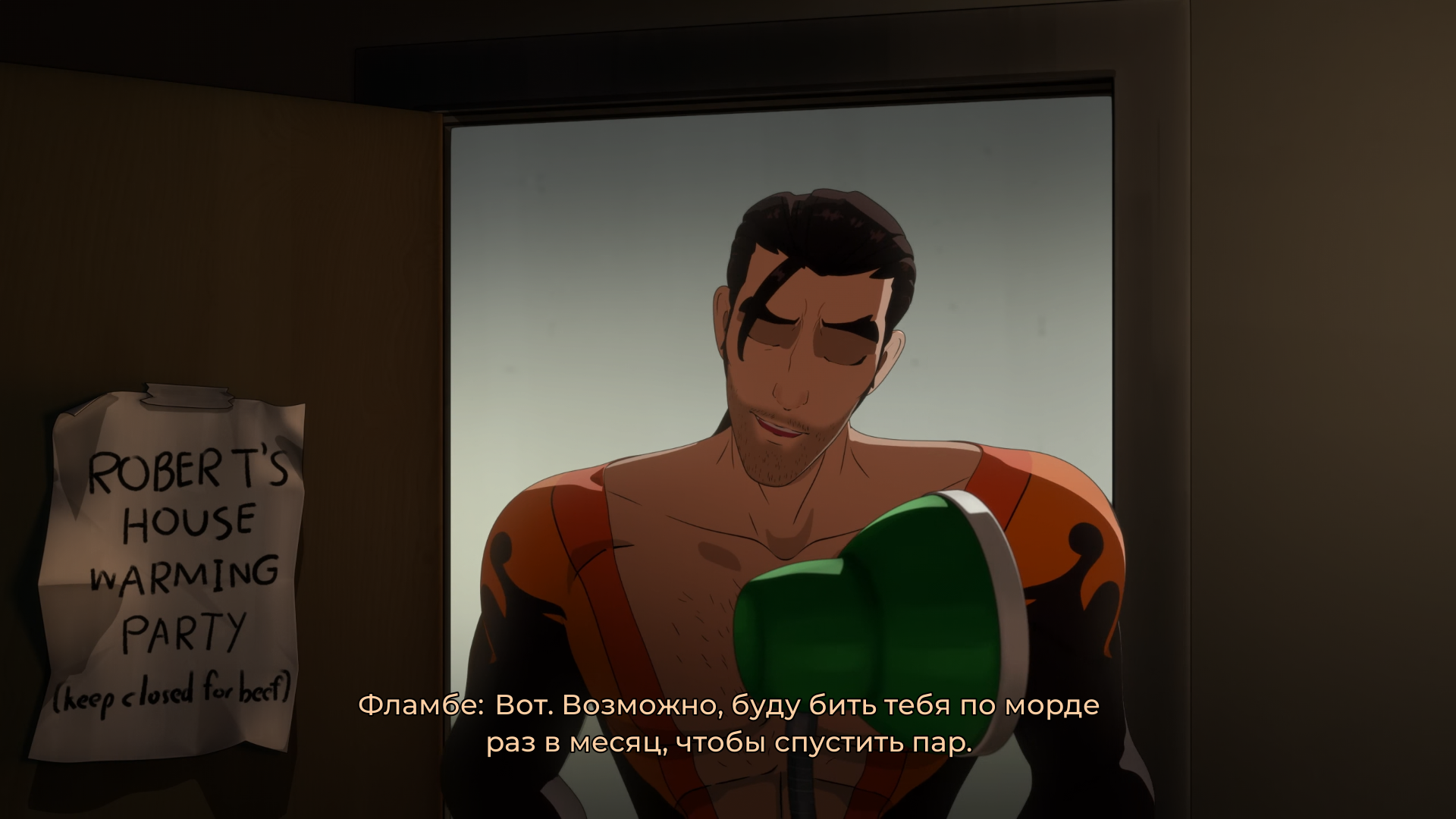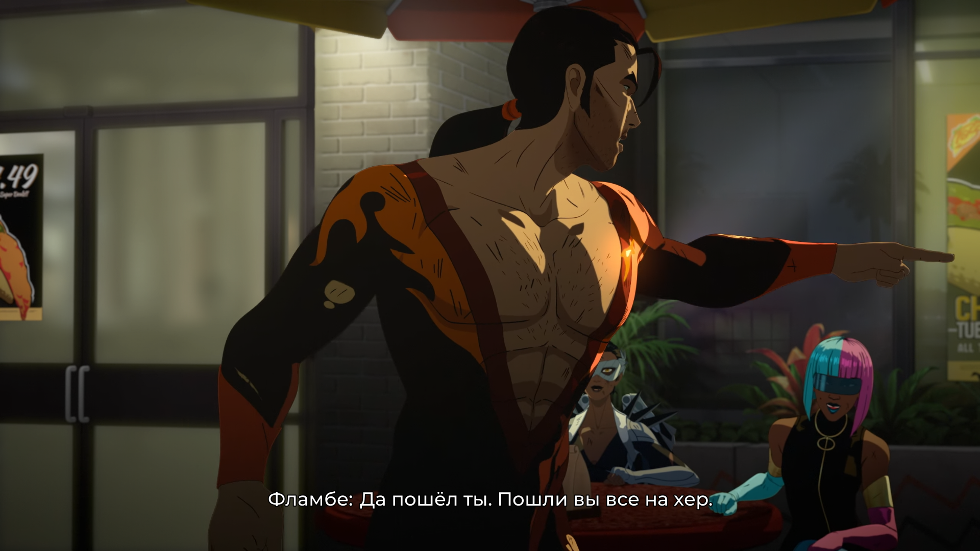 Чет я не понял, в первом эпизоде Фламбе же нам говорит, типо че ты тут забыл, ты же больше не супергерой, а сейчас оказывается, что он не знал кто мы или он настолько тупой, что без костюма не узнал?