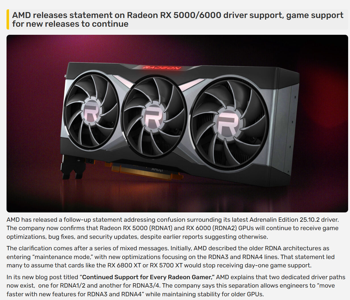 Еще они недавно хотели людей наебать - написали, что дров для 5000/6000 больше не будет (хотя последняя карта 2 года назад вышла, лол). Все просто охуели, ютуберы там возбудились, пошла волна - амдпаджиты сразу заднюю дали и такие "вы не так нас поняли!!! все назад вернем пожалуйста тока продолжайте нашу параша покупать дальше!!!!".