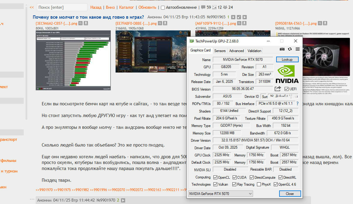 Но стоит запустить любую ДРУГУЮ игру - как тут амд улетает на помойку и сосет у ебаной 5060. Каждый. ебаный. раз.
