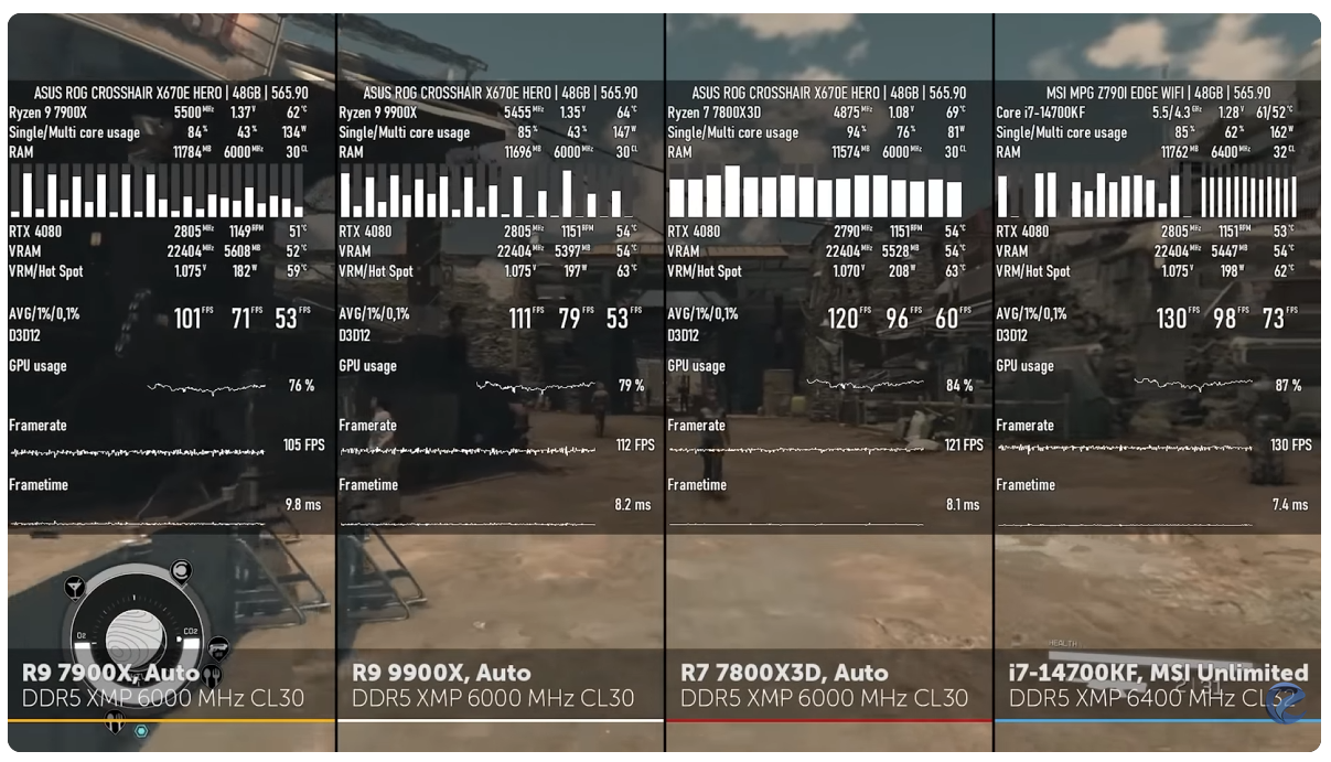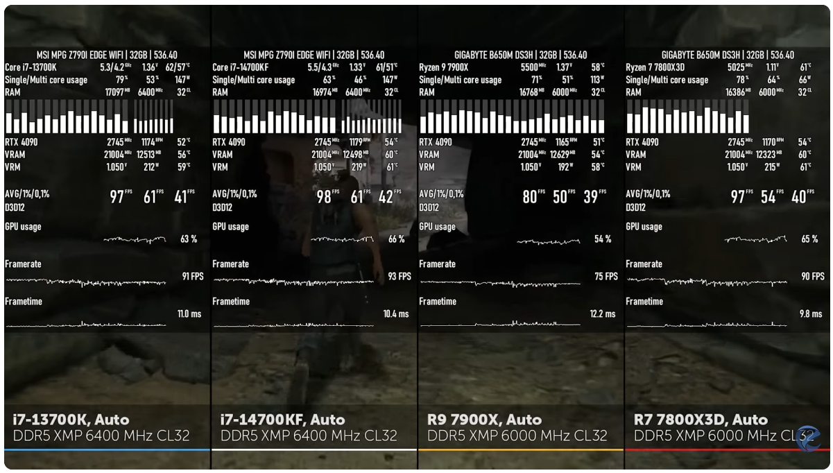 >>9905913 >при выходе 9 поколения 9ое поколение за щеку накидывало первым поколениям рюзенов в играх, в то время как амуде что-то может ответить только своим 9800х3д. Который, внезапно, рисует высокий авг-фпс только в простых сценах, а в сложных фризит и гадит под себя с неровным фреймтаймом. https://www.youtube.com/watch?v=oEVYA2XncKg&t 14600 ебёт всё аналогичное амуде в жопу, сами красные протыки это признают, пруфы выше. 14700 никак не отстаёт от 7800х3д кроме каески, в которой показывает "неиграбельные" 400 фпс против 500 на 3д-хрюзене. При этом 3д-хрюзен в многопотоке немощь ебаная, а аналог 14700му - 9900х, амуде продаёт значительно дороже. >пировафельницей Ммм, то ли дело амдкал со своей толстой крышкой, который под лимитом в 65 вт просаживает частоту даже на рабочем столе, а при снятии лимитов не может охладиться водянкой. Ну зато энергоэффективно, за электричество меньше платить!