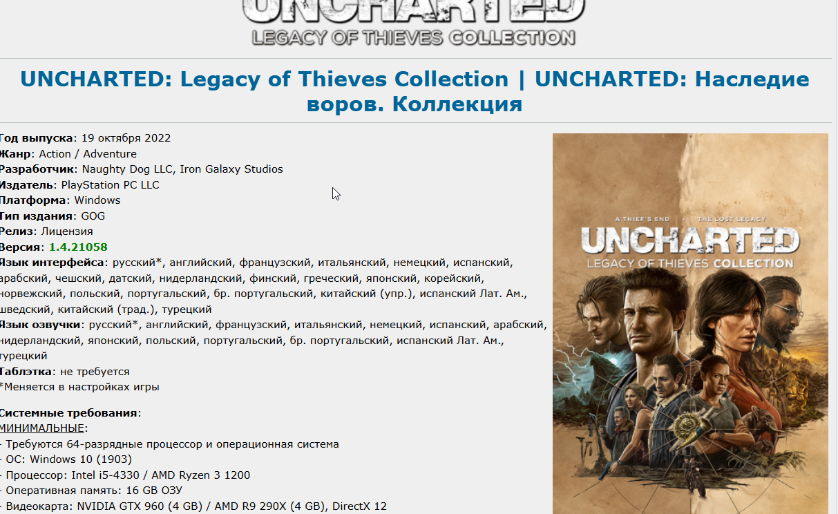 >>9913780 Да, совершенно верно, это оно. Uncharted 4: A Thief's End was released in May 2016 (PS 4). A standalone expansion, Uncharted: The Lost Legacy, was released in 2017 (PS 4). A remastered version was released as part of Uncharted: Legacy of Thieves Collection for the PlayStation 5 and Windows in 2022. То есть это Четвертый Анчартик и его ДЛК (ака ДЛЦ).