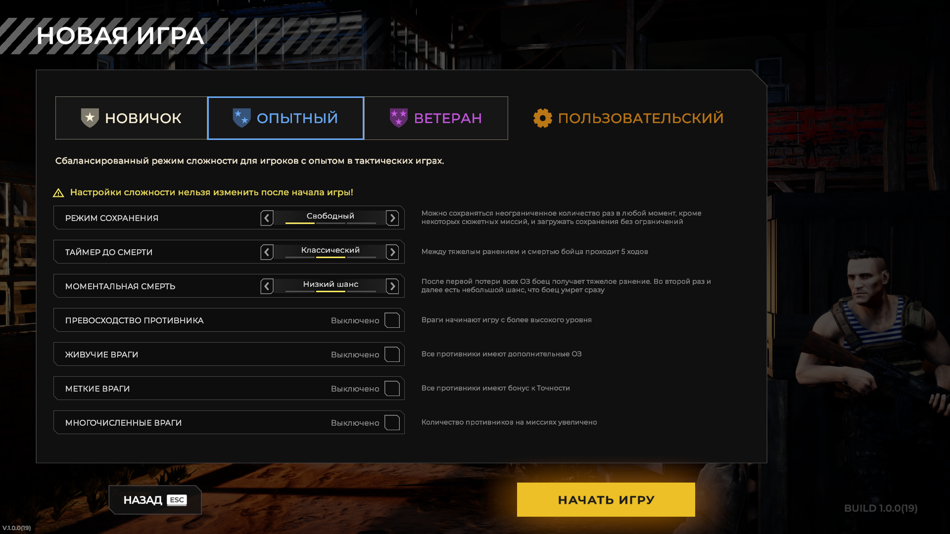 Техническая готовность релизной версии оставляет желать лучшего: подвисание, фризы на средних настройках. 1 раз игра зависла на моменте загрузки да так, что пришлось с кнопки перезагружать компьютер (не давала открыть диспетчер задач для принудительного завершения). Бесят тактические огрехи в самой игре, а игра то про тактику… Как может противник, находясь возле дома на уровне первого этажа попасть через окно в солдата, который стоит в центре комнаты второго этажа и при этом, он находится над противником?... Зачастую ИИ противников “зависает” и постоянно становится в режим наблюдения (1 солдатом обходишь с фланга и спокойно, как в тире, отстреливаешь всех врагов за несколько ходов. . Зачастую, экшен камера, показывает, как твой солдат стреляет в стену (бетонную или кирпичную) за которой даже не видно противника и попадает по нему… Нет вообще возможности назначить/поменять клавиши управления.