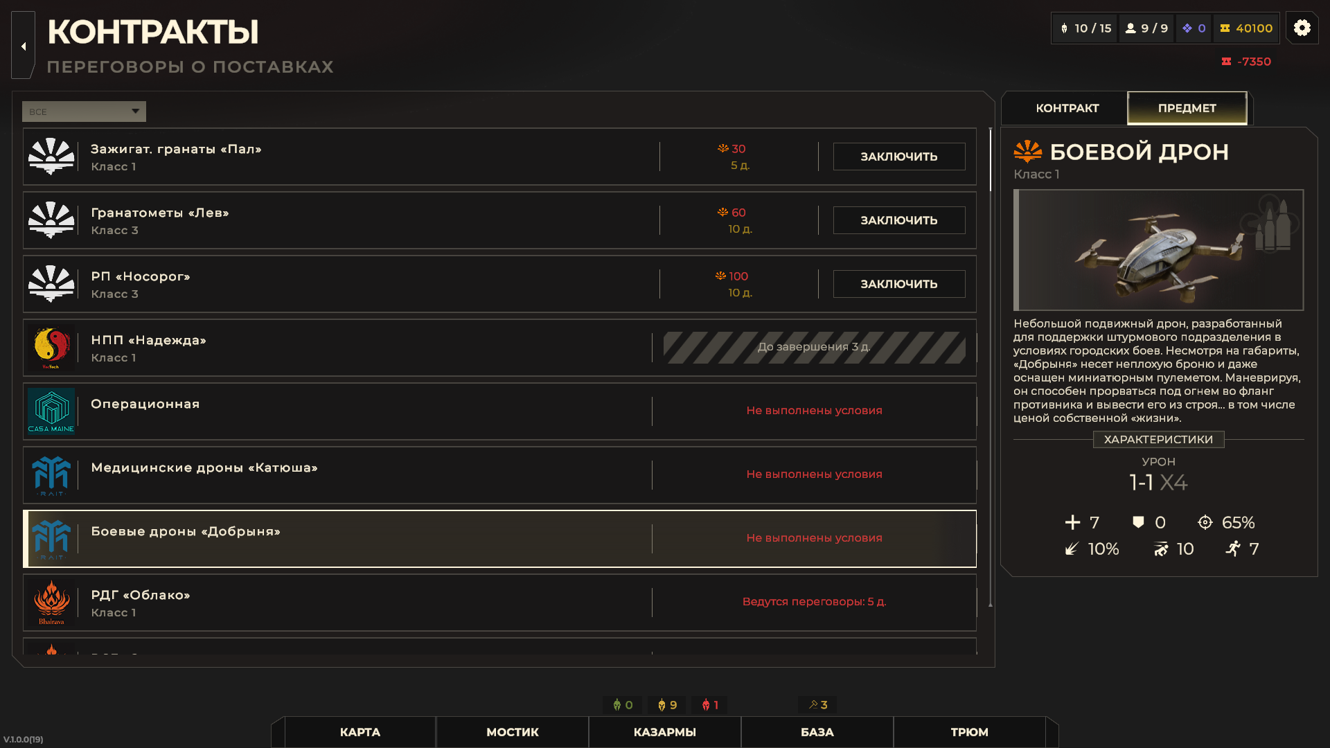 Баги: Исправлена засветка границ карты; Исправлено возможное отсутствие предметов в трюме после заключения контракта; Исправлено зависание в режиме наблюдения на обучающей миссии; Исправлено зависание при загрузке миссии “Следы на песке”; Исправлено некорректное отображение счетчика целей на экране результатов миссии; Исправлен ряд ошибок на отдельных картах; Исправлены некоторые ошибки в параметрах вооружения; Исправлена неверная реплика Юли на миссиях “Диверсия”; Исправлена иконка в карточке отсека “Радиорубка”; Исправлено описание тепловизора “Комар”; Исправлены отсутствующие картинки в карточках дронов; Заменены некоторые рендеры снаряжения; Исправлены некорректные требования к миссиям “Разборка”.