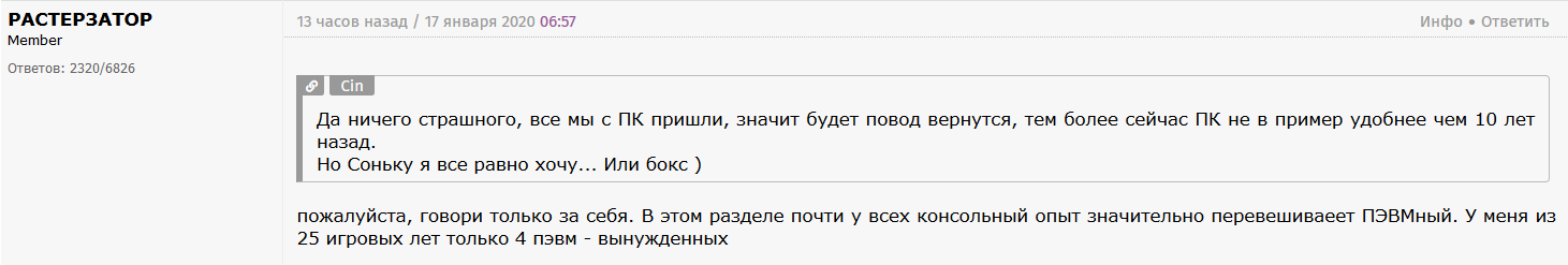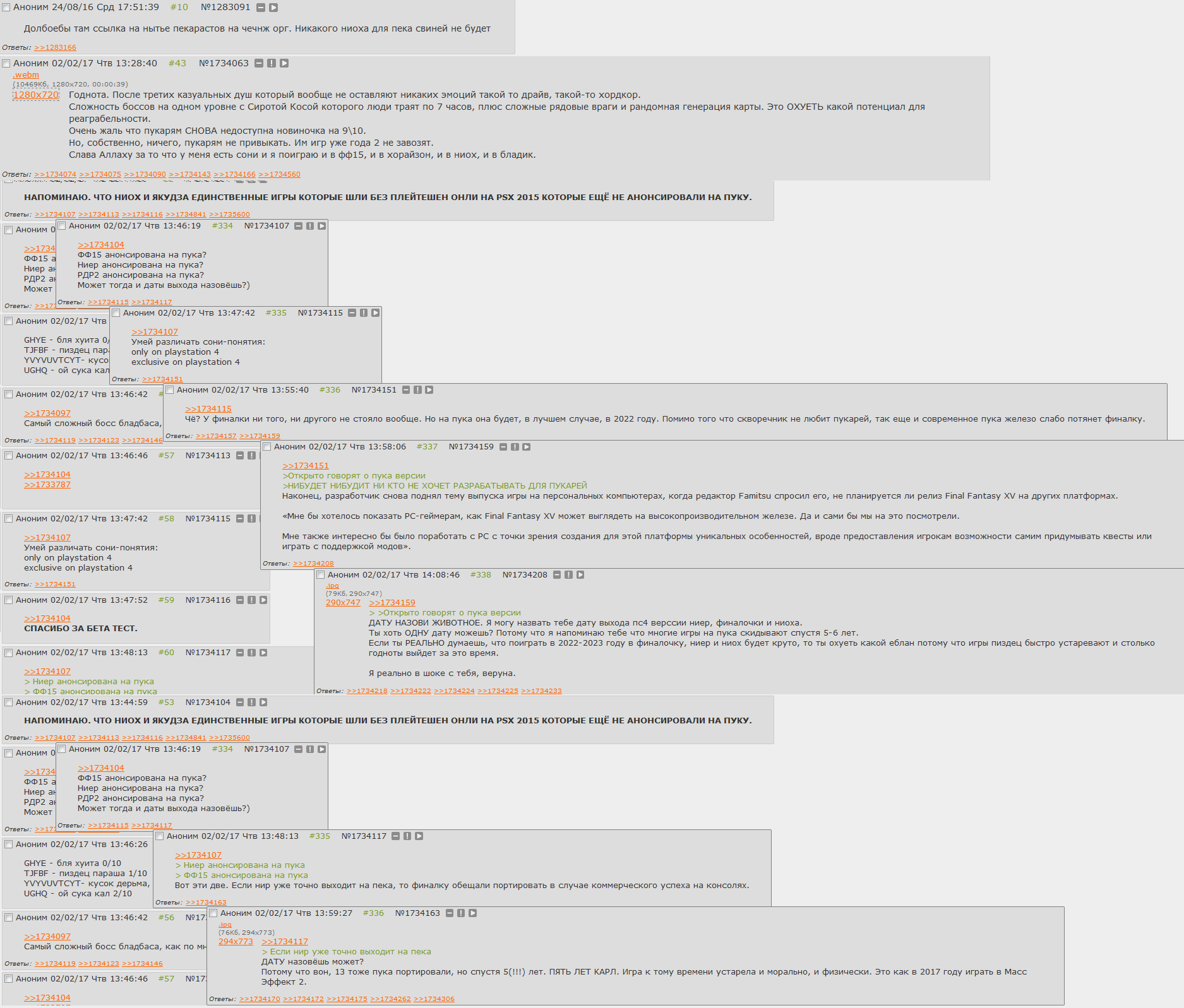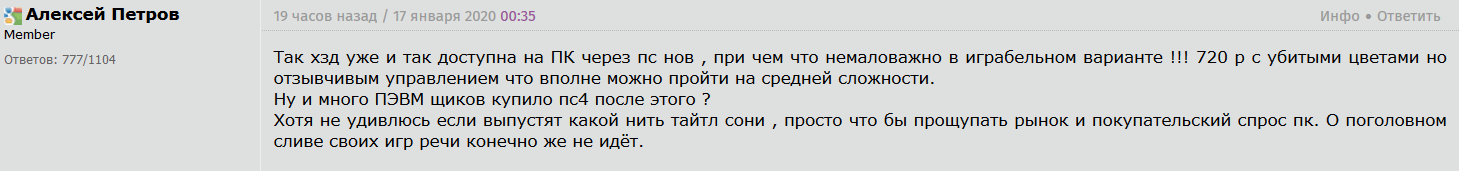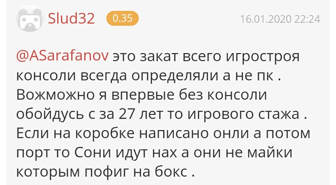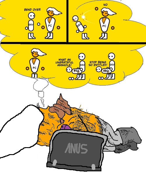 Имею геймерскую пеку и сони, играю и там и там. Пиратская хуйня на пердимонокле за геймера не считается, это нищая скотина, которая не делает погоды для рынка. На нее не ориентируются разрабы, все что она может это визжать в очередном треде навиначки как ему тогото не насыпали и того что нинравится насыпали. В принципе вся эта помойка /в/онючая из таких и состоит.