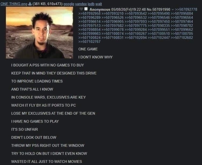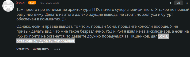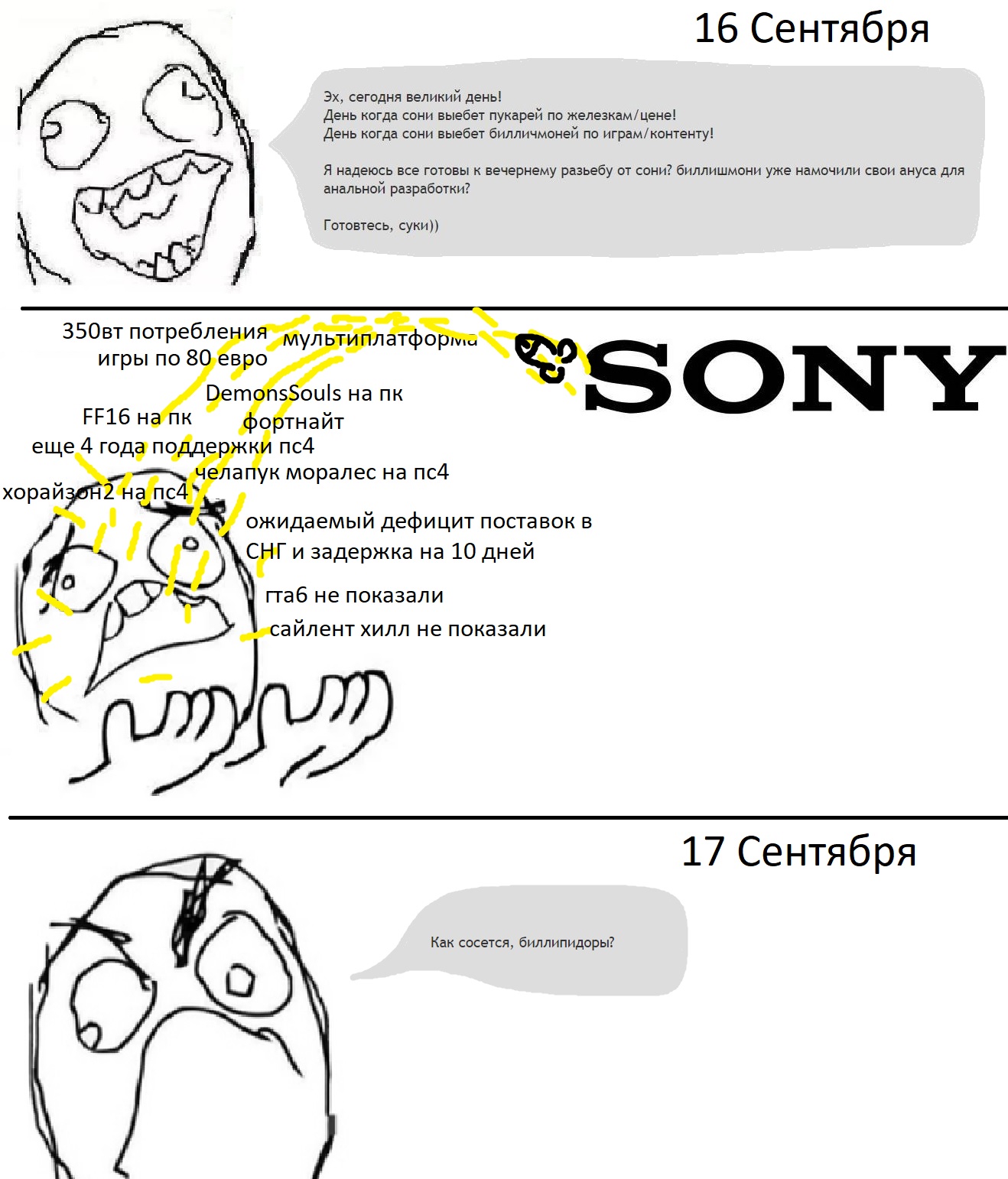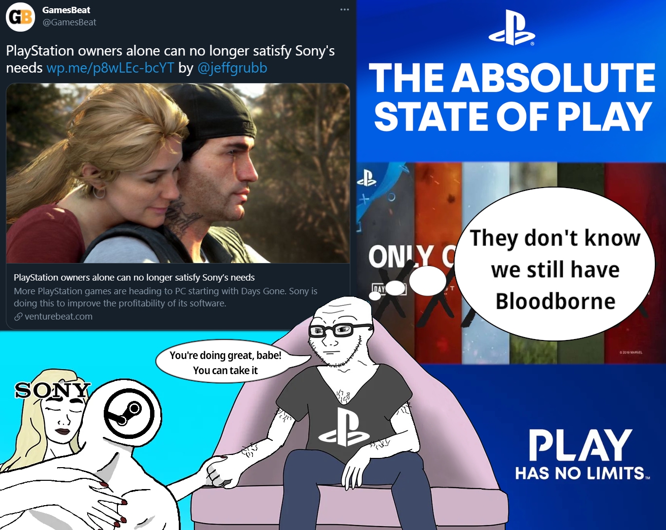 Сонибляди невдомек, что больше всего их хуесосить будут пекари с $2к+ пека. Чтобы оправдать потраченные бабки самоутвердившись. Проход в илитность изначально проигрышая стратегия с погремушкой за $399. У нищепекарей не слаще житуха, но хоть инди могут погонять.