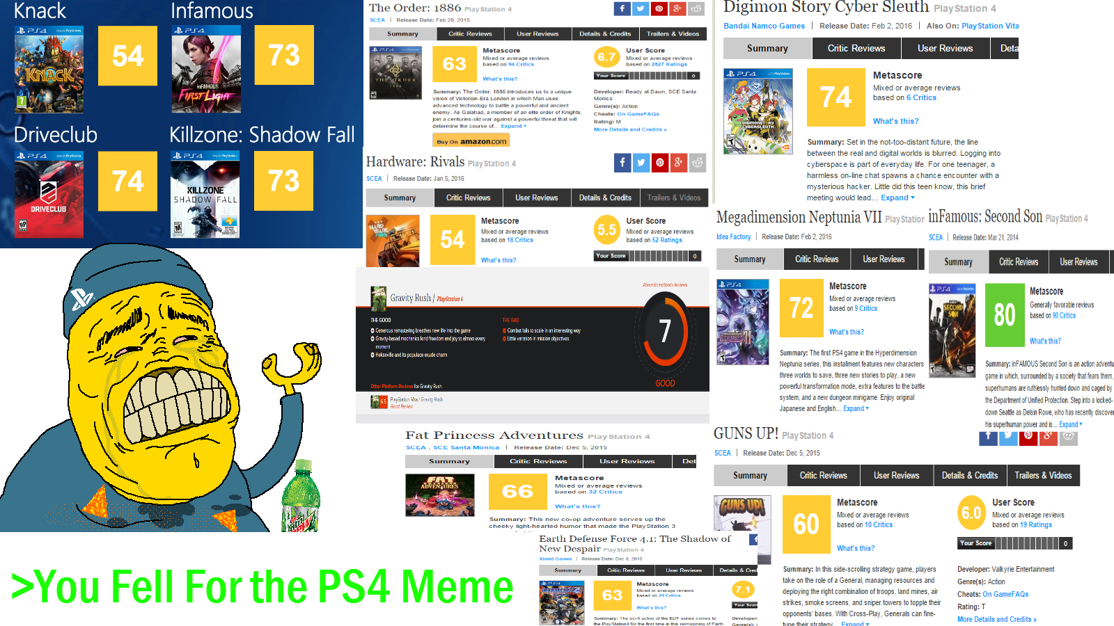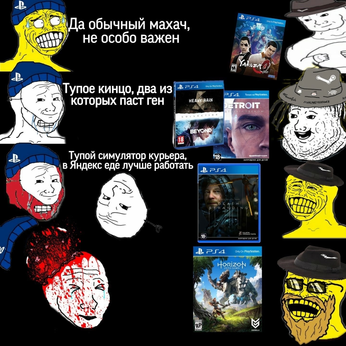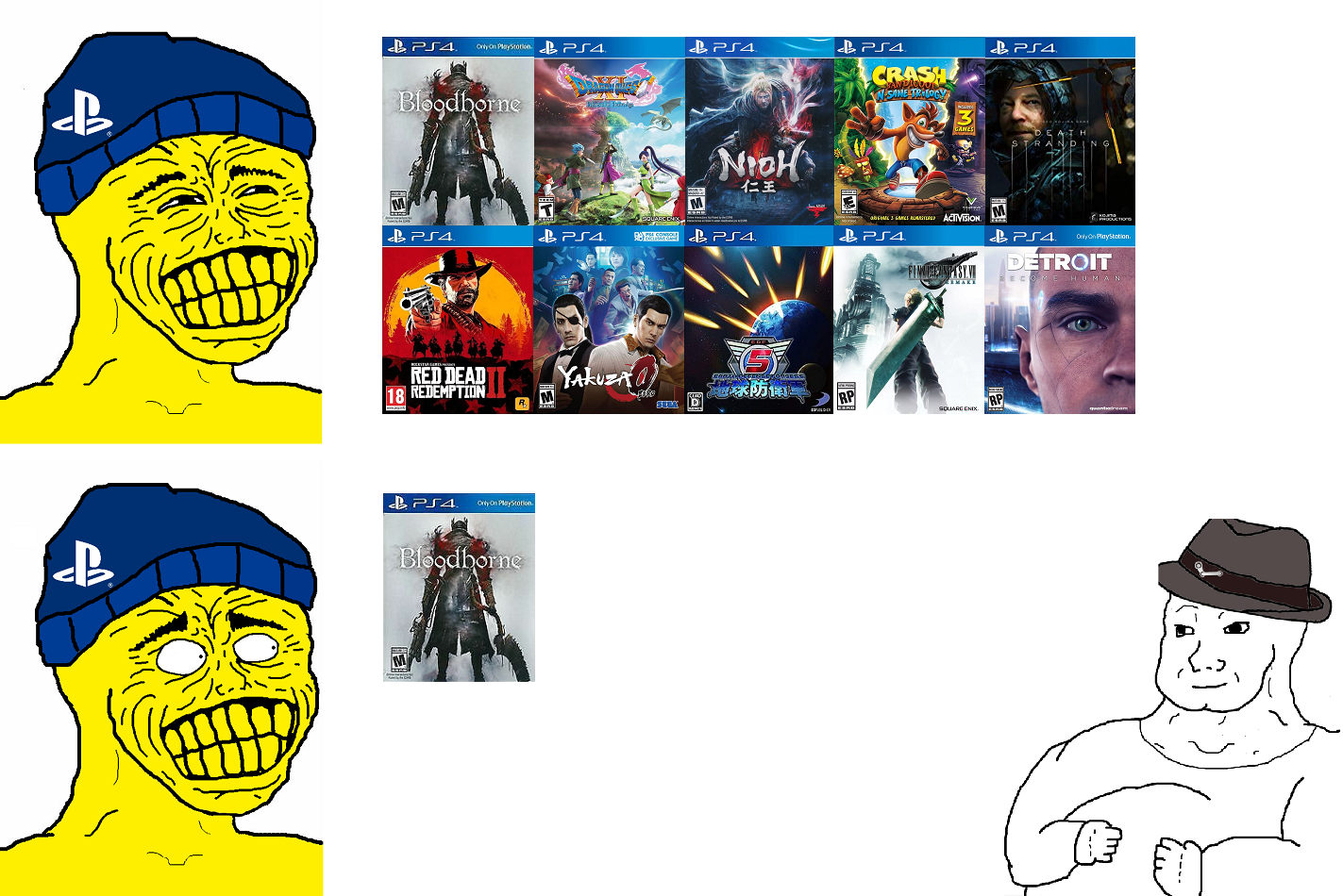 >>9867789 >>9867792 >>9867794 >>9867795 Любить игры не потому что они хорошие, а потому что на них плашка "Only on Playstation". Это секта нахуй. Больные сонибляди.