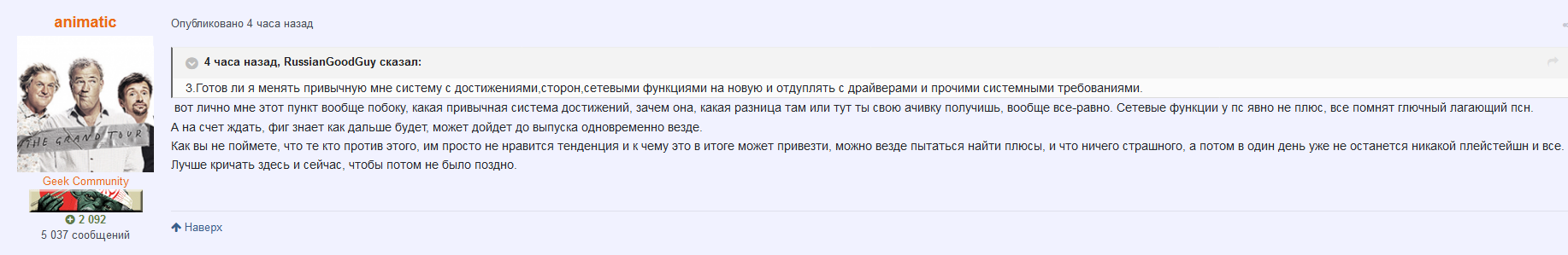 >>9886203 >Мне вот абсолютно насрать, что консольщик со мной в одну игру поиграет Да потому что у тебя нету таких игр, разработчики не выпускают игры на комп.