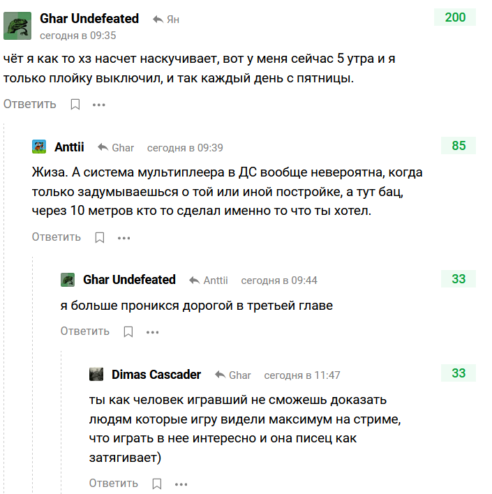9900233 Сучую, купил на релизе, несколько раз запускал, доходил максимум до первых миссий из лагеря и дропал от уныния. Гейплей говнотир ебучий с покатушками и они хотят чтоб я сотни часов эту хуиту терпел, пока всю карту запылечошу. В юбивинчики хоть просто играть приятно при таких масштабах, вообщем то вся сонипараша с попенами оказалась всратыми юбиклонами на минималках.