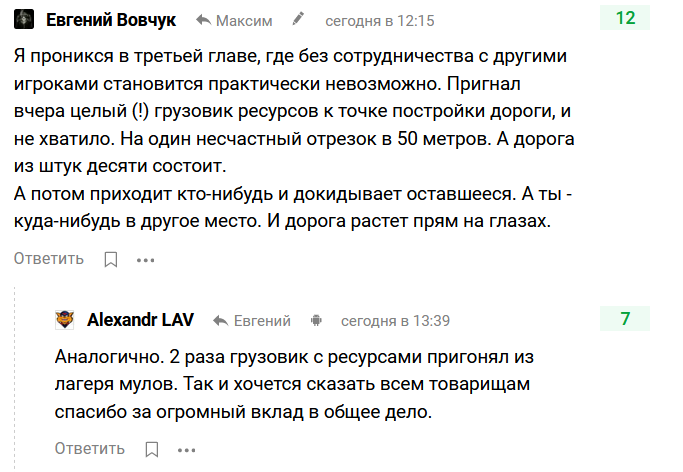 >>9867804 Я нихуя не понял эти дауны че в одного не могут осилить построить дорогу? Я соло на пиратке на основной карте построил дороги от края до края и ниче не задушился. А эти че-то плачут от счастья что им кто-то другой ресурсов принес. Видел я ролики, там же вся карта нахуй истыкана всем дерьмом, что игра из меланхоличной игры про одинокого путника превращается в весёлую прогулку. Когда бабу тащил через снега - это целый отдельный эпизод борьбы с природой и отдыхом на горячем источнике. В мультиплеере же пидорасы протянули канатную дорогу что через горы можно перелететь за 30 секунд вообще земли не касаясь.