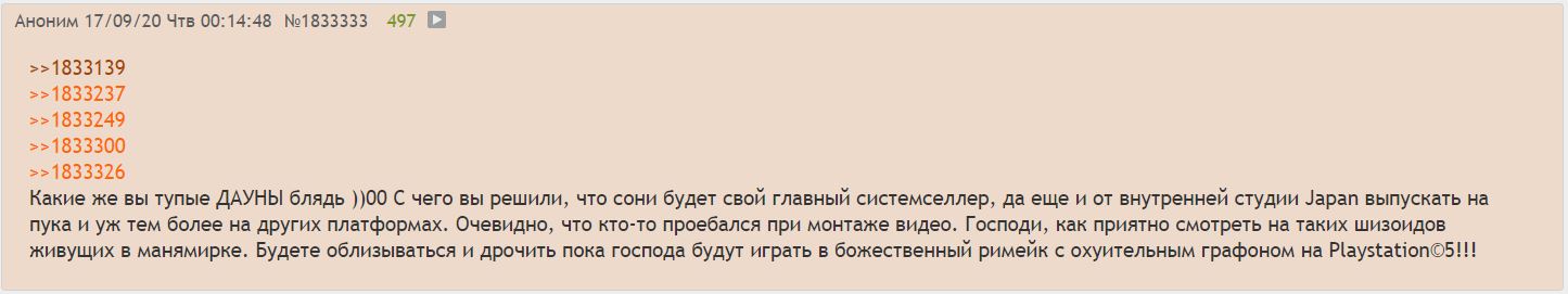 >>9864981 Сейчас вспомнил и тоже взлольнул, всё таки животных более жалких, чем сонибдядки, в мире и не существует, наверное. Один подгоревший петушок в этом треде, который тут на каждый пост высирается про какие-то там пуки, которыми видимо его японцы кормят вместо игр, тому доказательство.