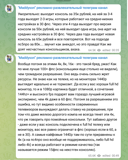 Единственное что понятно это нахрюки про >РЯЯЯ ПК НИЩЕТА Здесь консольщик хотябы рационализирует (для себя по большей части) свое потребление через попытку выставить его за статусное. Хотя с реальной картиной мира это бьется слабо, потому что ПК железо, уровня современного гейминга как правило дороже. При чем порядочно. 100к будет стоить средняя современная игровая пека против 70-75к мыловарни. И пека в этом случае еще даст намного большую производительность.