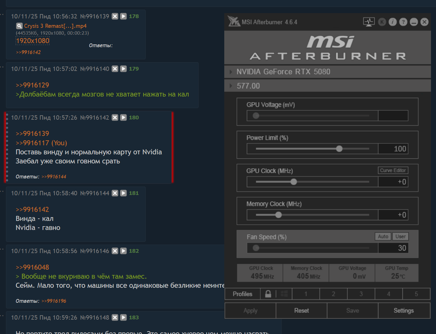 >>9916715 >Дрова-то стоят и железо через них работает У тебя с драйвером идет нвидия апп, дебс. Как можно не поставить нвидия апп я не понимаю. Это самый базовый инструмент на уровне 7зипа. >Стим это главный лаучер для всех игр Нахуя нужен лаунчер для игр? У тебя есть проводник и ярлыки. Я надеюсь ты игры не покупаешь на полном серьезе в 2025 году.