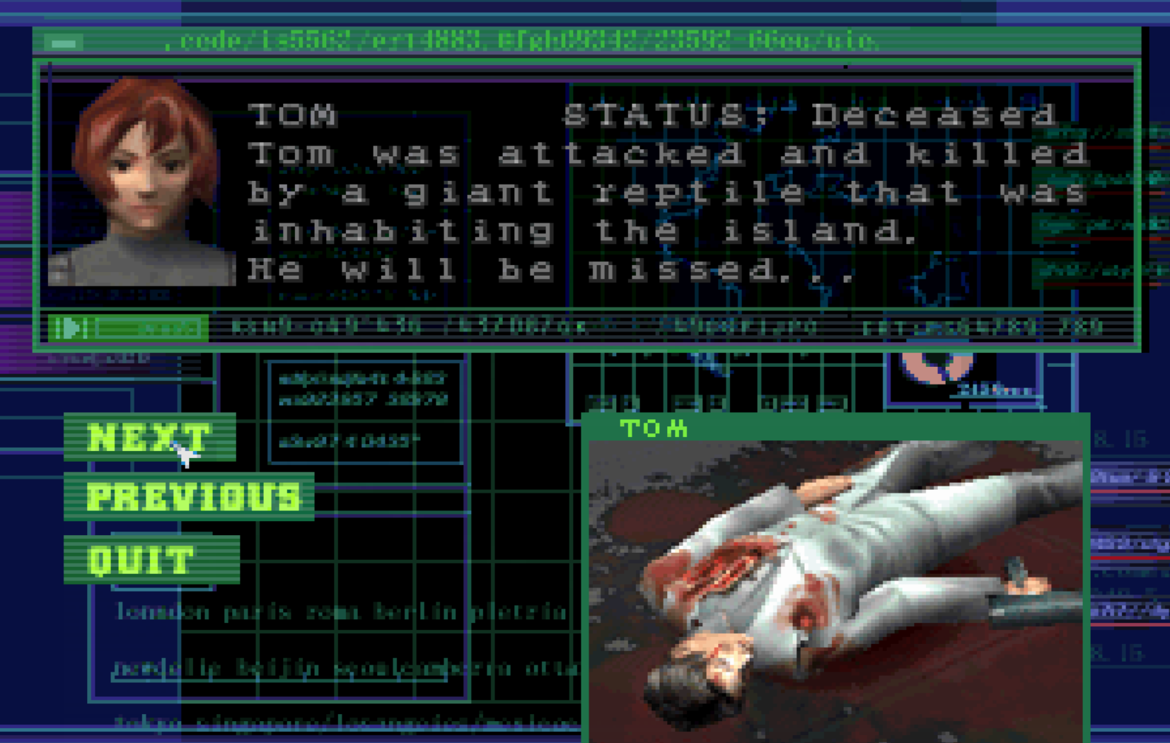 >>9916417 Ну да, я просто прожимал кнопку скриншота. Лучше бы они конечно сохранялись как во всех нормальных играх. А, вспомнил, я точно не осилил DDK код на одной из дверей, пришлось загуглить. Еще раздражало что не понятно какие предметы интерактивны, а какие нет, ведь тут все 3Дшное, в отличие от очевидных 3д элементов поверх 2д задников из подобных игр (включая Dino Crisis 2), из-за чего я бился в стены как долбоеб пока не накликал нужный монитор в комнате с 10 мониторами. В любом случае, я поставил 4/10 этому калу.