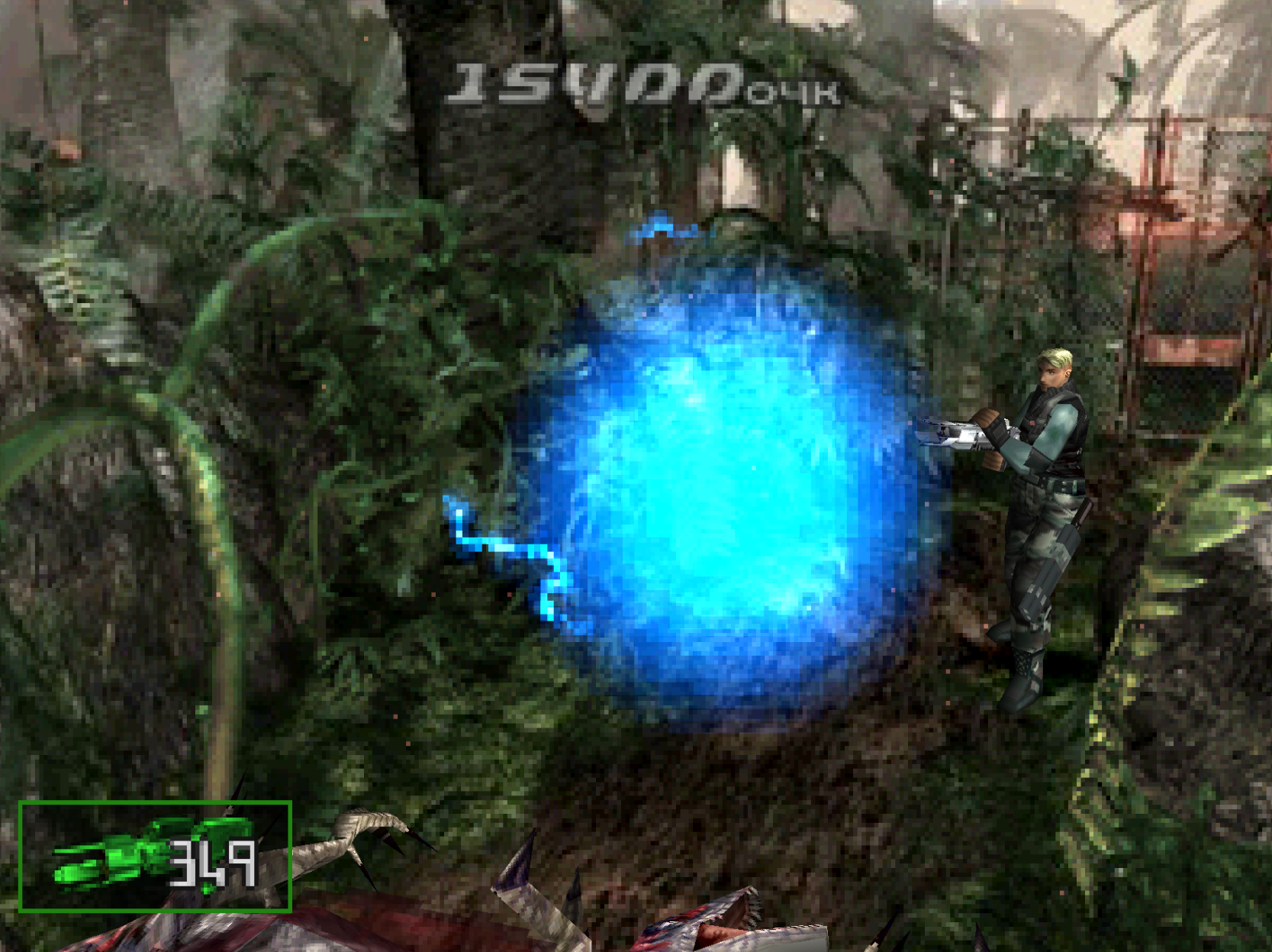 Пока единственная пушка, комфортно убивающая синих рапторов. Остальными нужно делать финты-кульбиты, забираться на лестницы, слезать с лестниц. А этот шар отлично их разуплотняет.