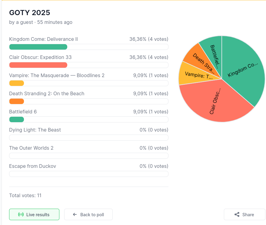 Третье место после kcd2 и ow2. На игру года не тянет, хоть и хорошая игра.