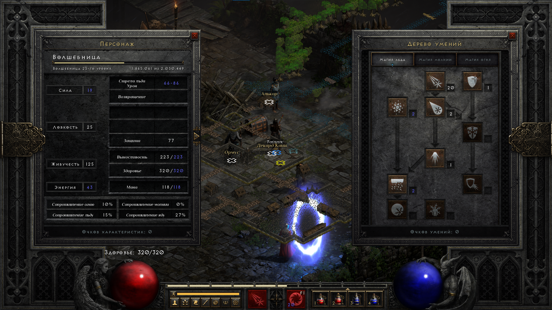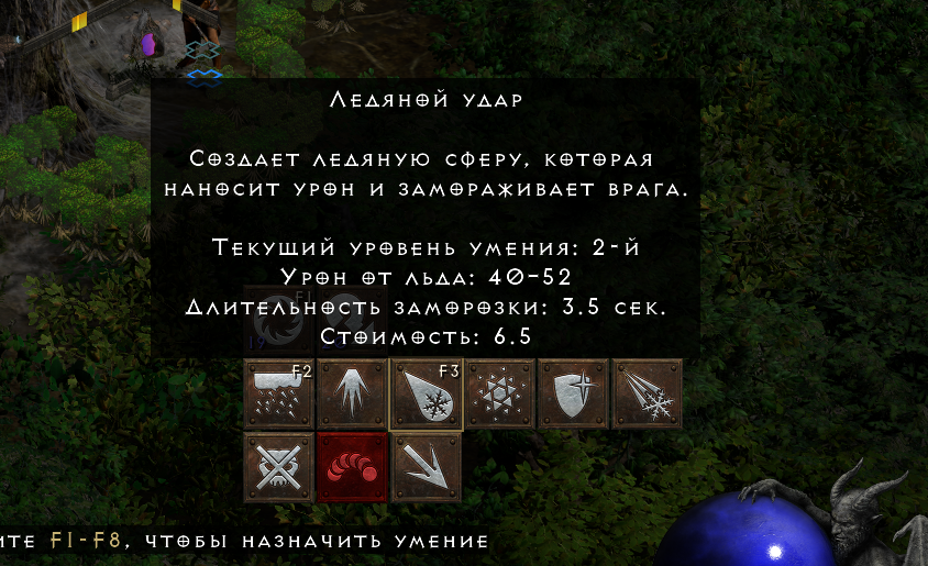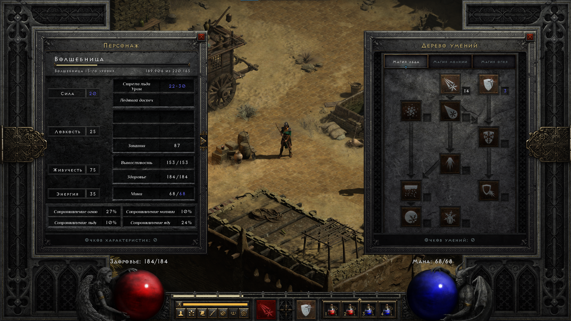 Он сказал, что нужно максить ледяную стрелу, потом взять ледяной шип, потом метель, когда будут доступны. Из характеристик максить нужно только живучесть, остальное по минимуму, ну там пару баллов ради шмота можно, остальное западло, энергия вообще не нужна, потому что есть зелья маны. И нужно брать наемника при первой возможности.
