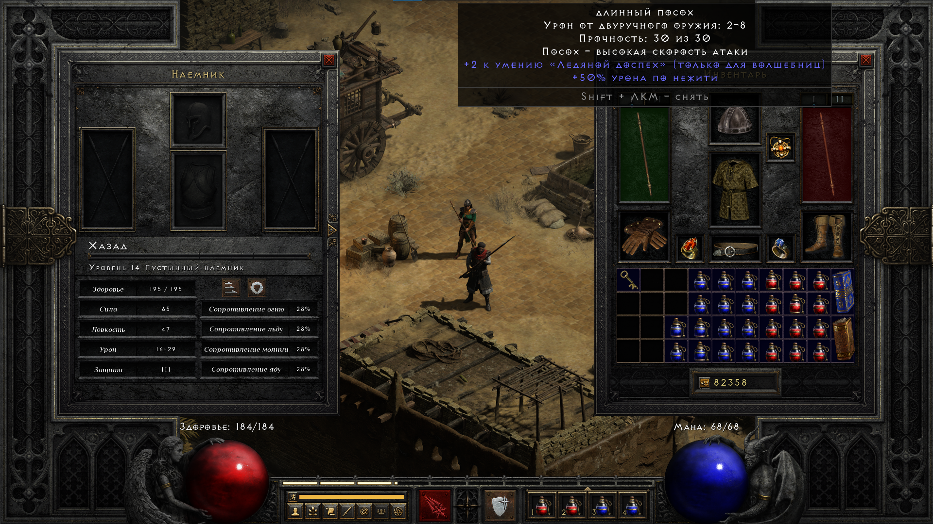 Также я каждый раз советовался, что продавать, что надевать и так далее. Он сказал, что нужно брать посохи, которые добавляют очки навыка к твоей ветке, все остальное оружие и шмот можно смело продавать, они необязательны, только если добавляют ману и скорость применения умений. На все деньги покупай наемников и зелья (примерно 3/5 инвентаря).