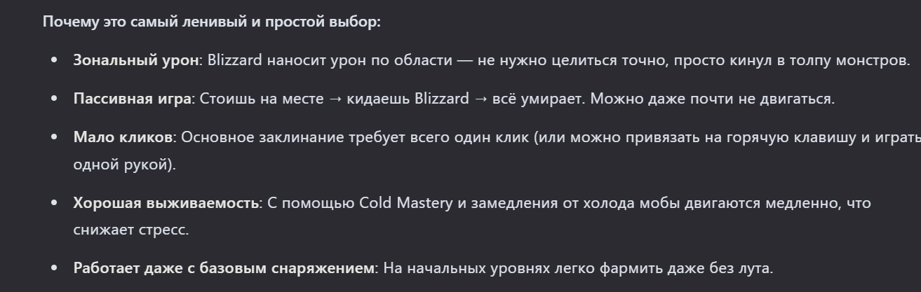 Мне было лень ковыряться на форумах и тематических вики, поэтому я спросил у квена самый ленивый билд, который нагибает всех, а ты кайфуешь. И получил ответ, что либо некромант, либо волшебница, но лучше волшебницу.