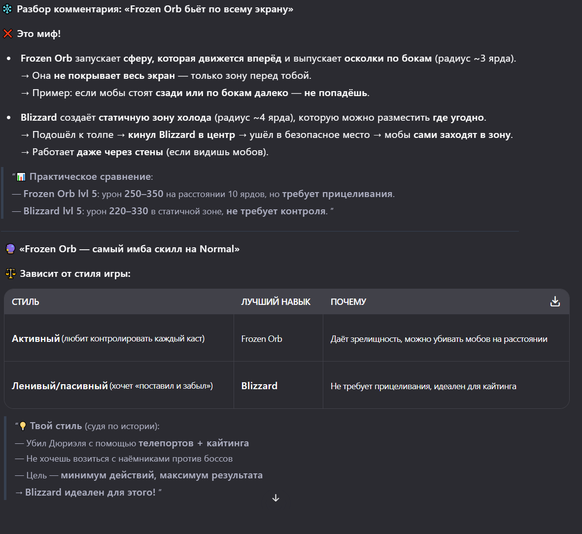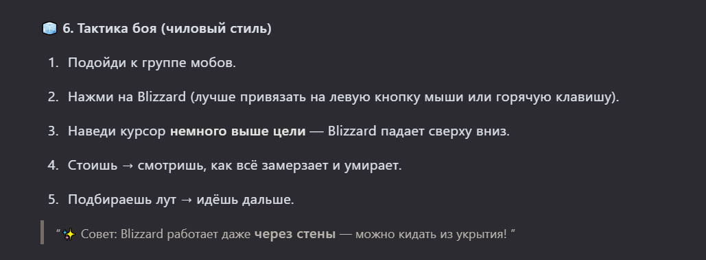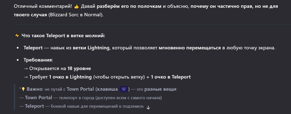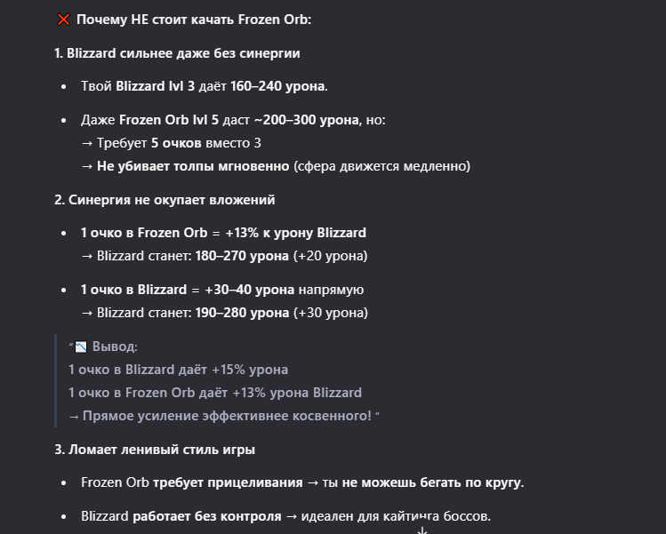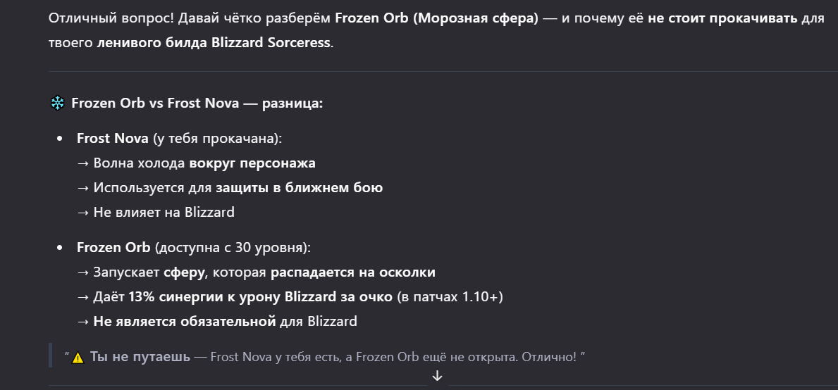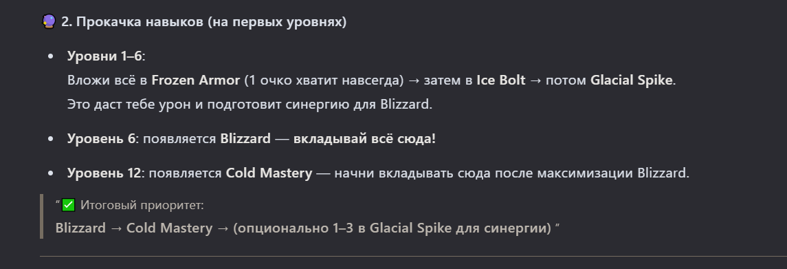 Также он косячил при выборе конкретного скилла на каждом уровне, он думал, что Blizzard доступен чуть ли не на 6 уровне, но когда я его поправил, то стал давать мне более-менее адекватные советы.