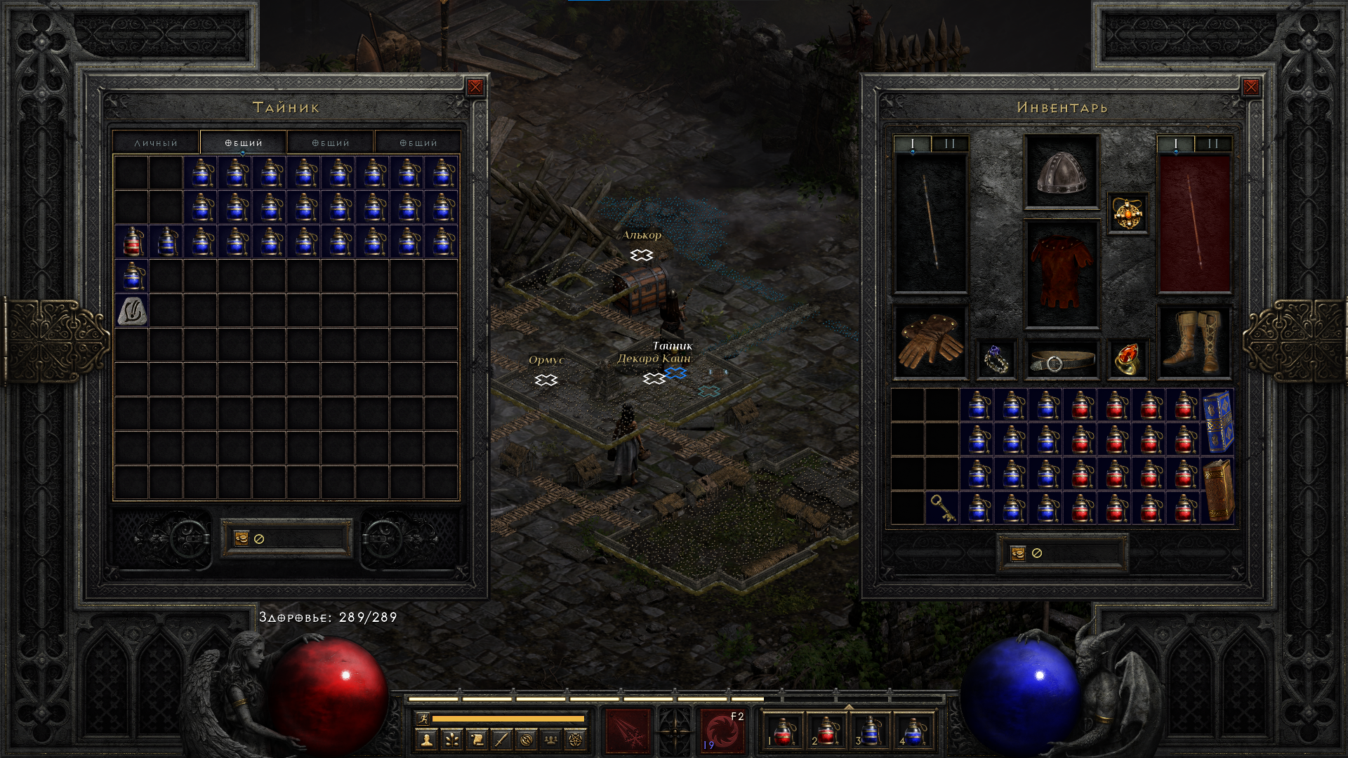 Я офигел кстати с этого. Зелье занимают ровно одну ячейку, стандартный инвентарь 40 ячеек. Если назначить зелье на быструю кнопку, то оно 1 или 2 раза применится и нужно снова перетаскивать его в ячейки быстрого доступа. Проще постоянно держать инвентарь открытым и кликать по ячейке с зелью правой кнопкой мыши. Также здесь нет автосортировки инвентаря. Это капец как неудобно. Хорошо хоть свитки перемещения и распознавания можно хранить в книгах.