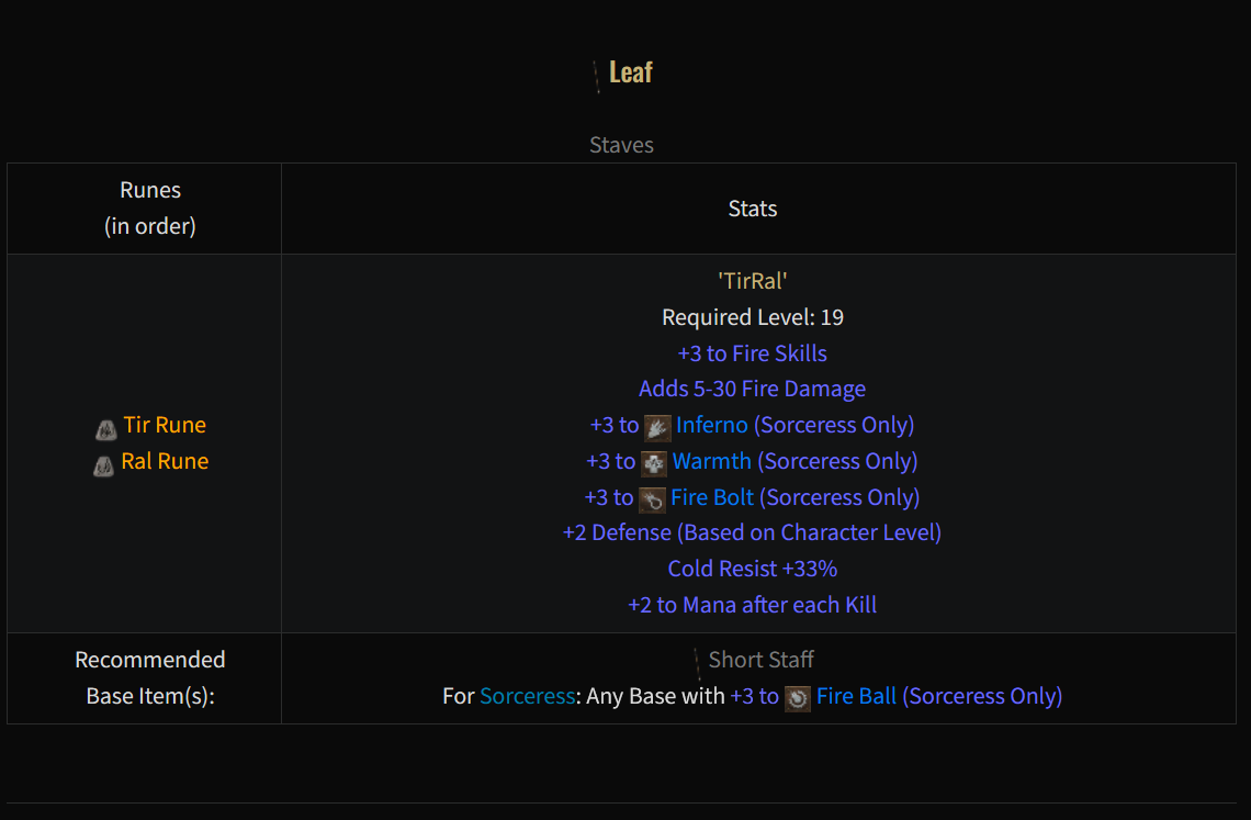 Рунное слово leaf буквально узаконенный чит, последний раз метеорб_сорке собрал его в посохе (+3 теплота +3 фаерболл), посох купил во втором акте.