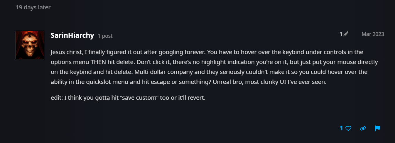 Я не смог снять привязку клавиши F3 к бесполезному навыку, чтобы он лишний раз не вылезал при прокрутке мышкой.