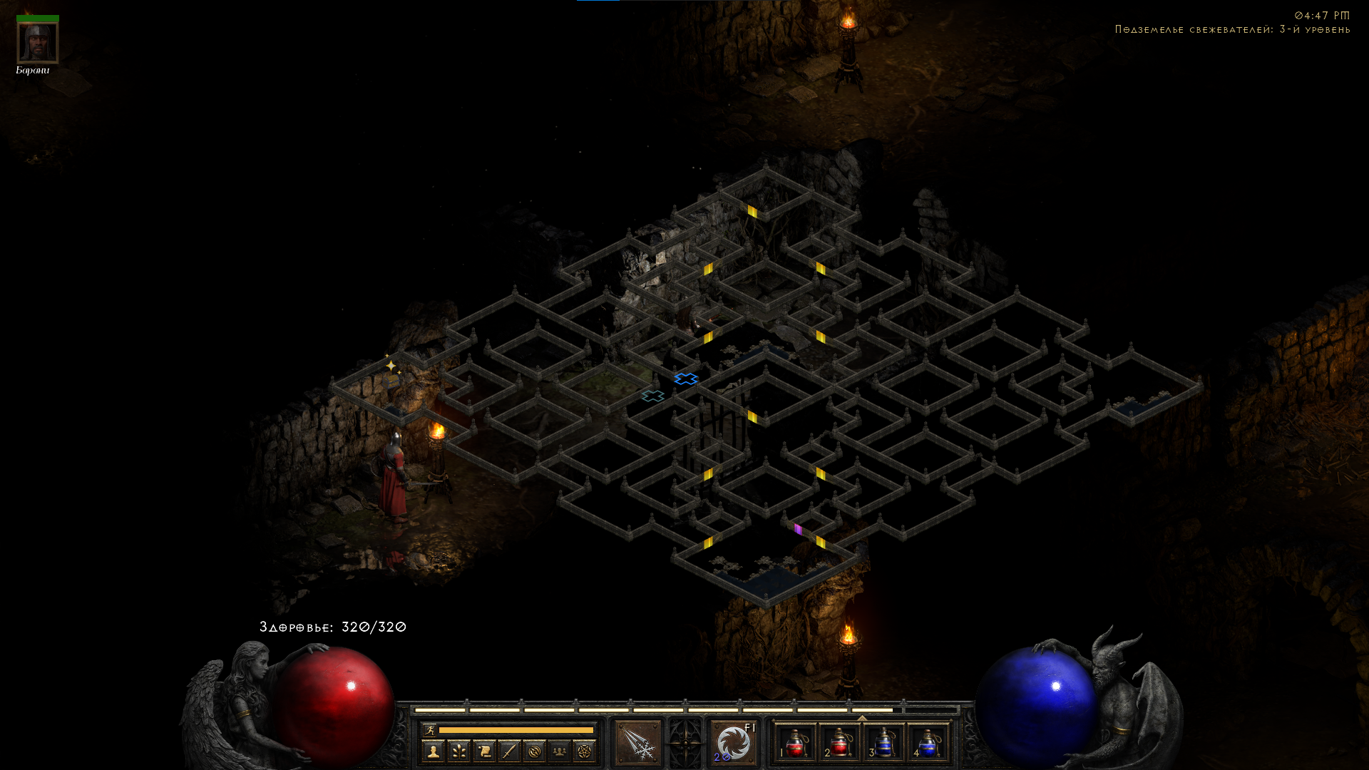 Очень неудобно возиться с зельями, проще забиндить телепорт на правую кнопку мыши и валить если мало здоровья, в городе лечат на халяву. Тратишь зелья из пояса, если кончаются, валишь в город.