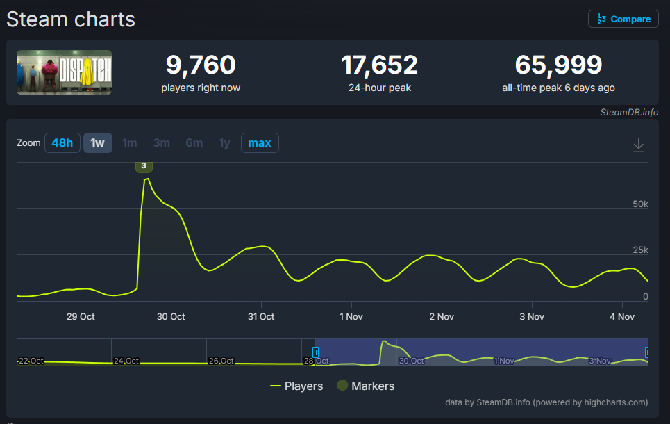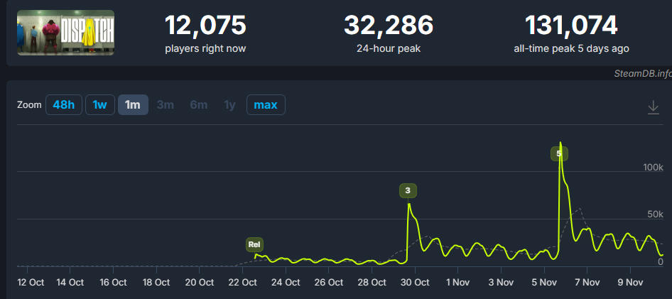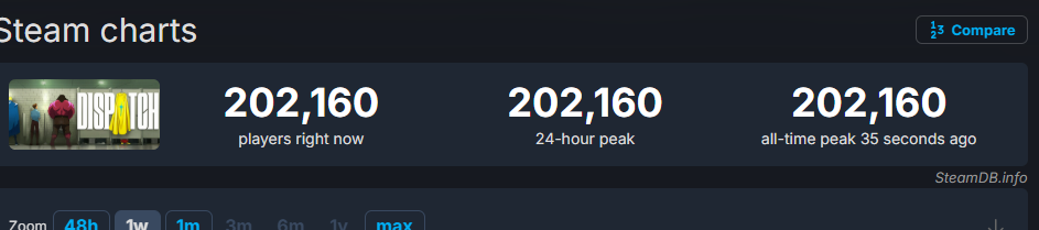 >>9901832 Это старый график, ща последние эпизоды выйдут может 200к пробьет Зато наглядно видно как работает эпизодическая система и сарафанное радио, после каждого нового дропа эпизодов онлайн прыгал вверх