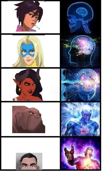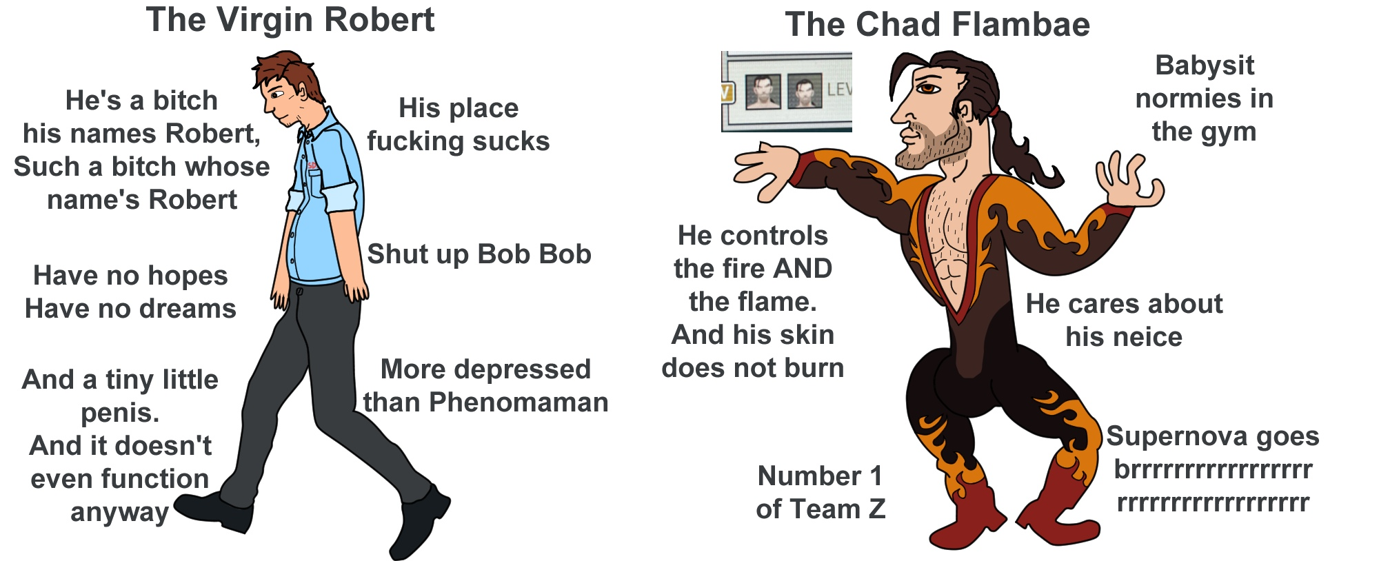 Одно дело быть чётким и дерзким без способностей и вывозить при этом за весь базар, как Роберт. А другое дело быть чётким и дерзким со способностями, а потом быть попущенным ехидным нормисом что в бронекостюме, что без него, как Фламбе.