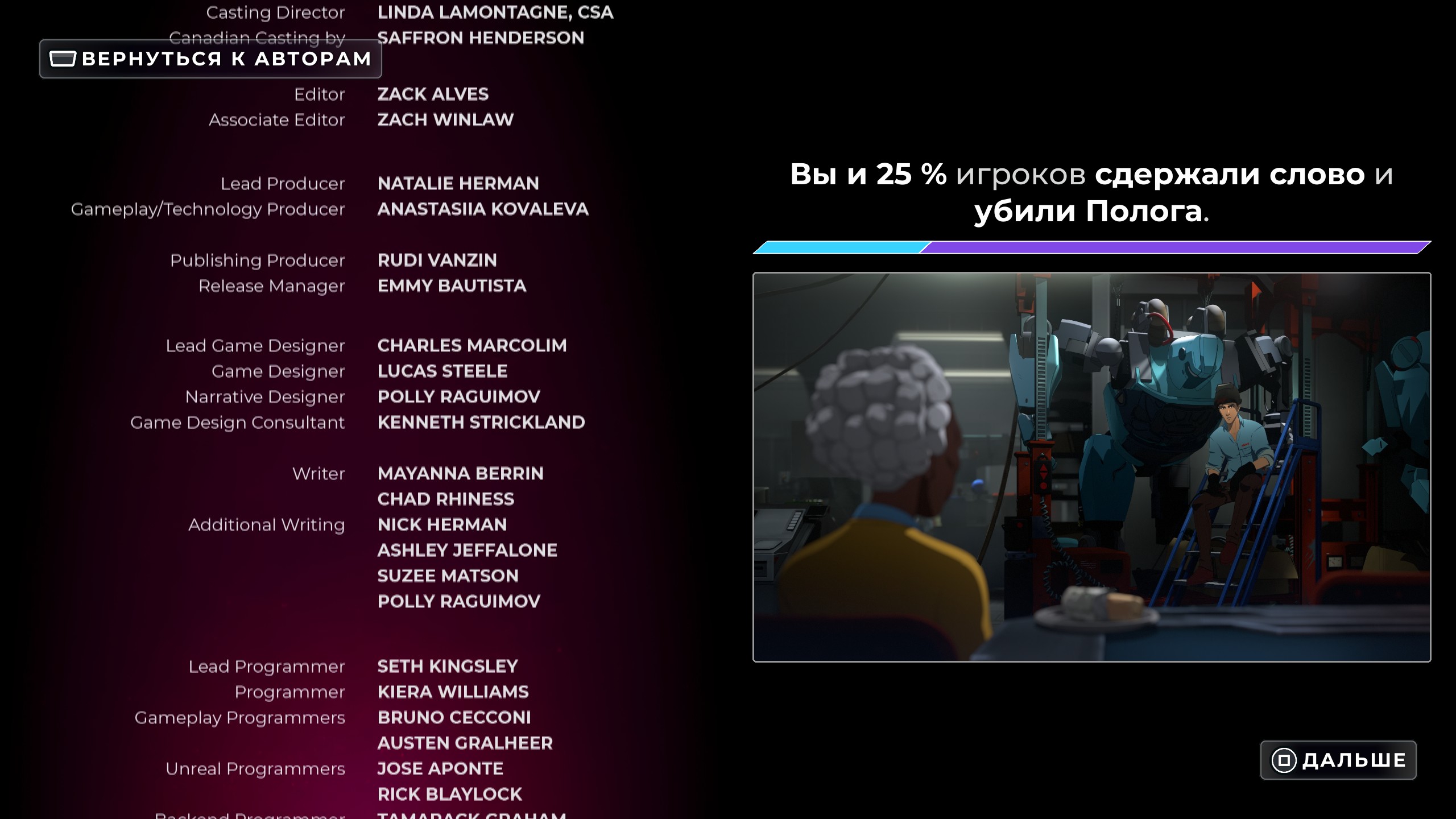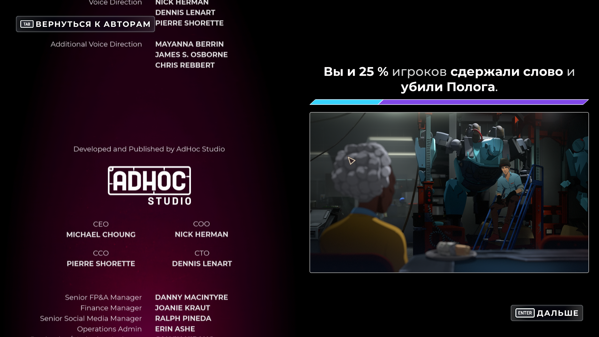 Жалко конечно, что геймплей вообще никак не влияет на сюжет, ну именно Диспетчерская часть, да и взлом особо если честно, если проебёшь Невидива всё делает сама (во всех трёх случаях за всю игру), такое себе. Вот реактивность истории на геймплей мне понравилась, увольняешь перса он исчезает, добавляешь нового он появляется, потом огнеопасный афганец уходит на одну серию. А вот почему геймплейные фишки не влияют на сюжет непонятно, было бы круто чтобы персы в катсценах юзали те способности что ты им прокачал например. Но это много бабла надо наверное на отдельные анимации, понимаю.