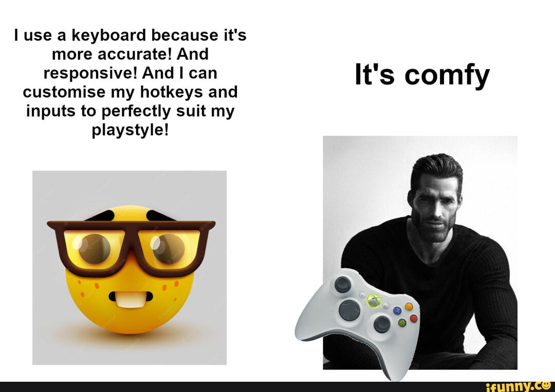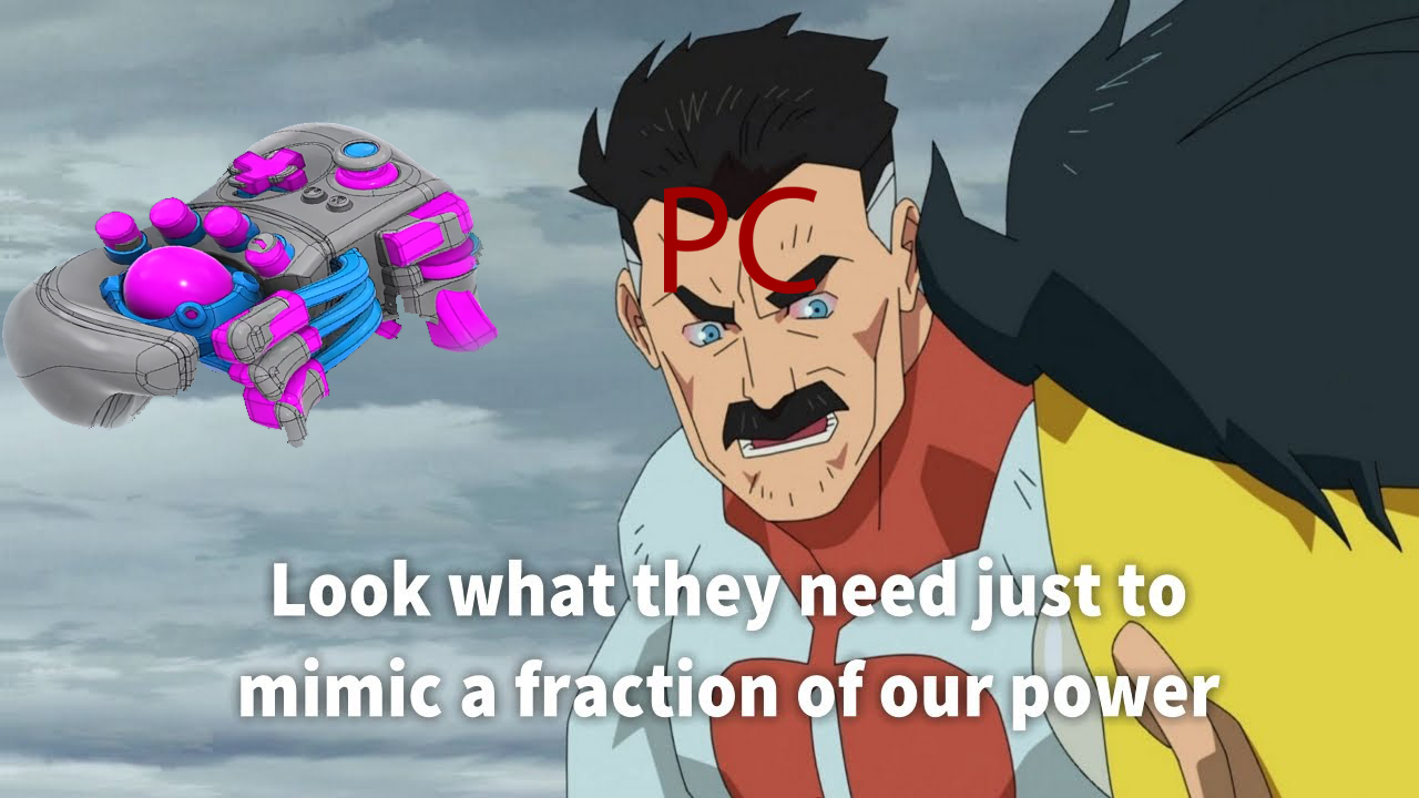 >>9918703 >клавомышебоярина понимаешь для мыши нужен стол, а это значит нужно сидеть ровно а после РАБоты в офисе за столом с мышью в руке хочется откинутся в кресле но продолжать играть хотябы на 80% точно как на мыши вот для этого и выебываются с попыткой перенести точность мыши в убогий геймпад