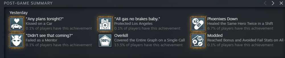 Романсил Блэйзер, Нвидию оттолкнул возле шкафов. Поцеловалися с Мэнди на машине, попили певко, жаль не поебалися. За это минус балл.