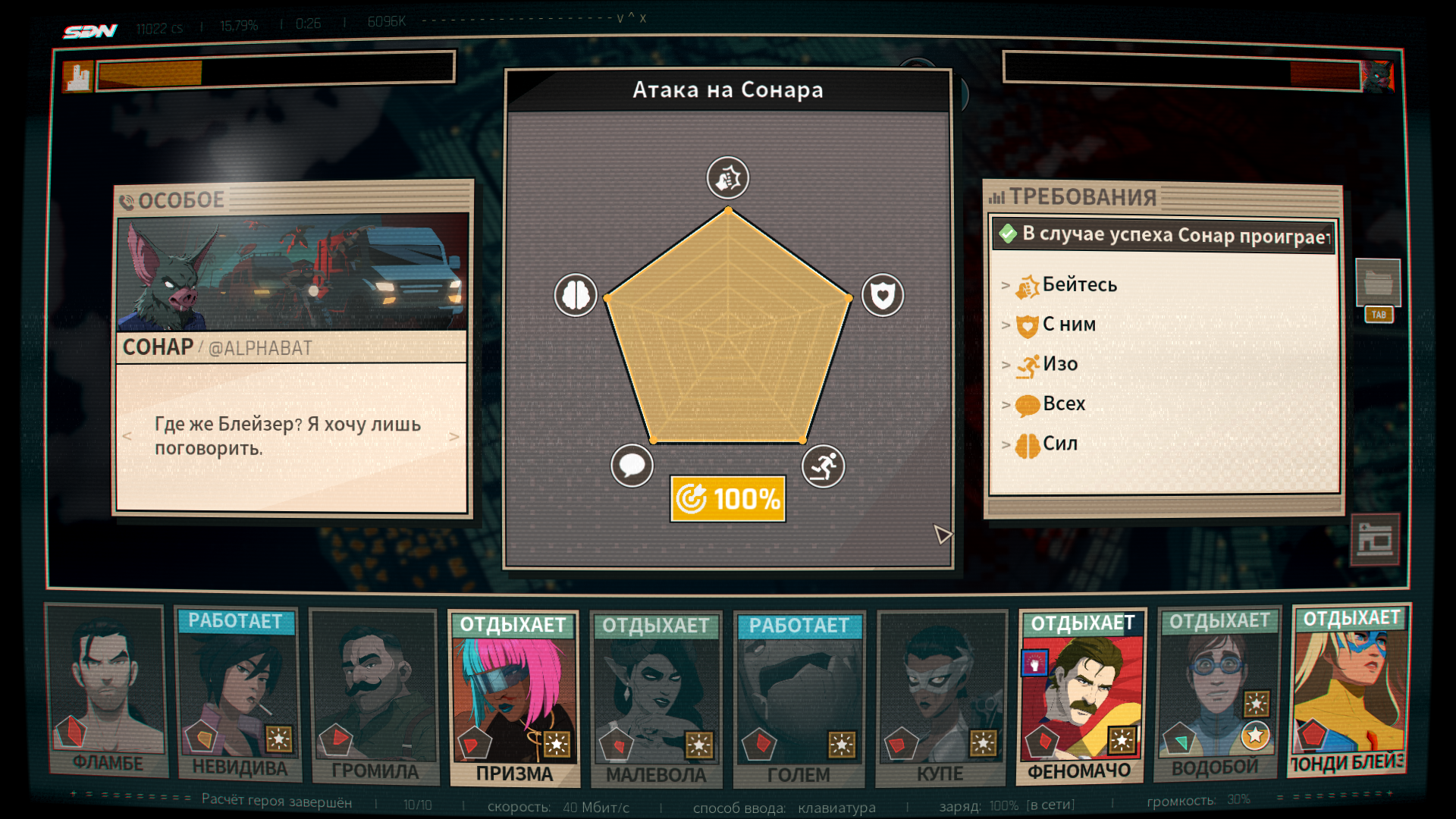Хочется перепройти и посмотреть другие варианты (я знаю, что это поменяет сюжет на 2%, но все-таки): заромансить блонди, взять Вотербоя вместо Феномена. Но я чисто физически не могу заставить себя уволить Сонара. Это прям мразотность какая-то.