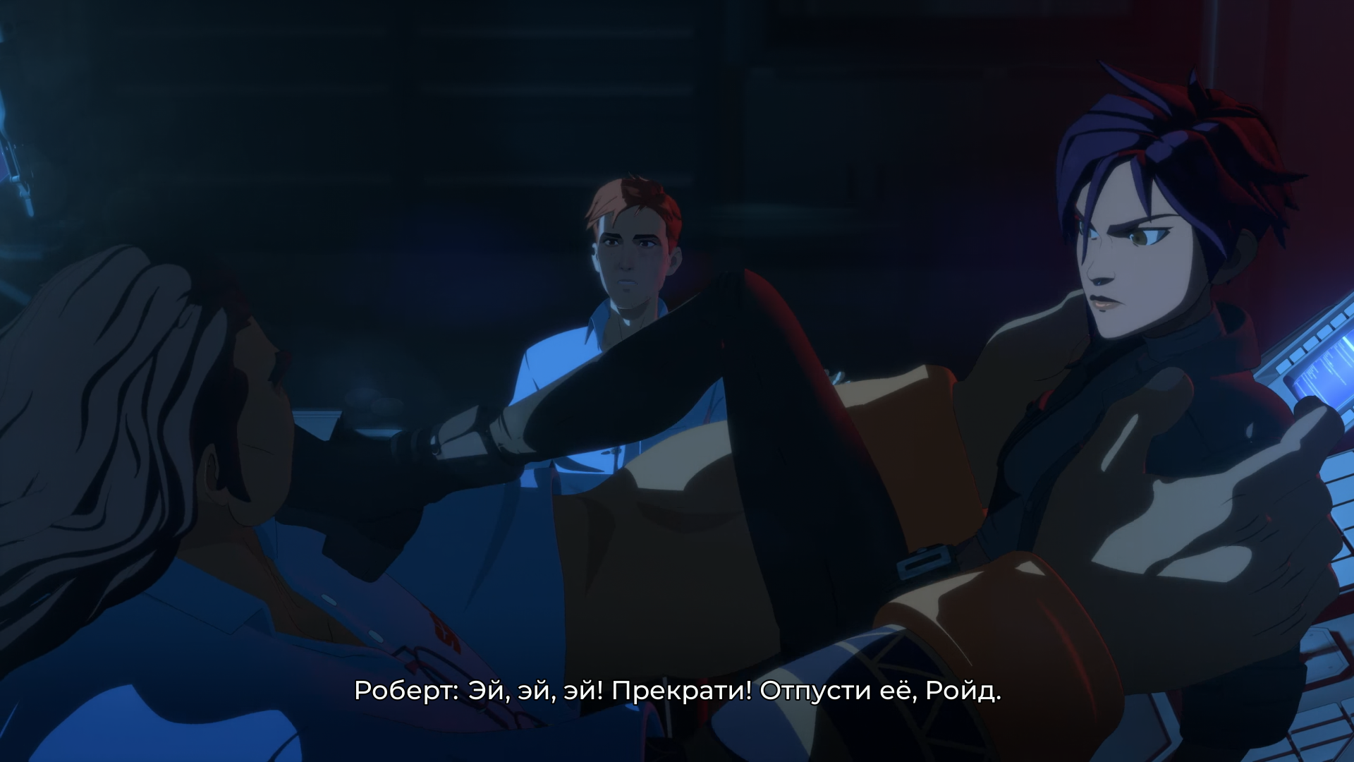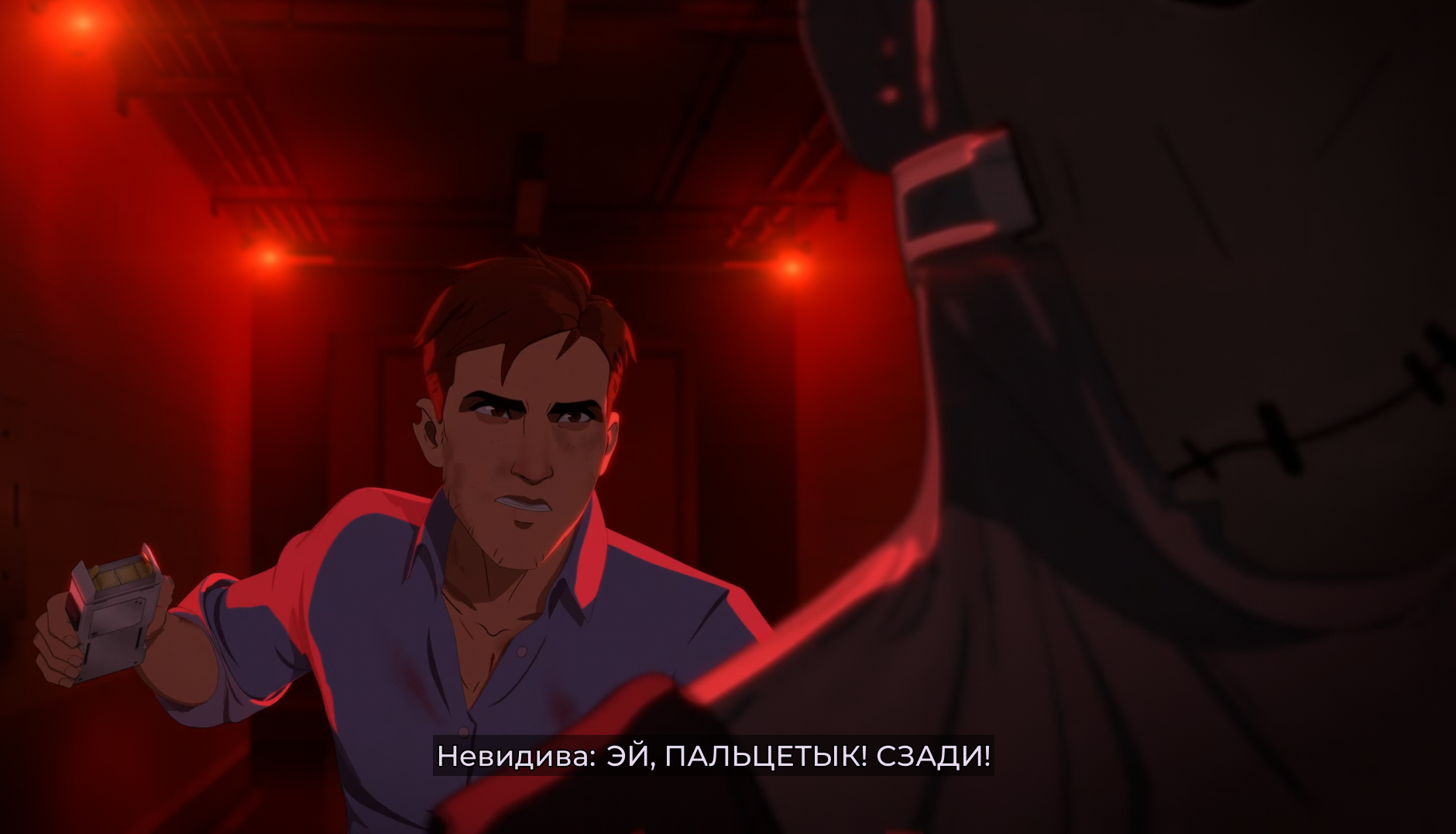 Тебе Невидимка че говорит в раздевалке, когда сисик показывает? Она на Шрауда батрачить пошла, потому что у неё астма прогрессирует, она буквально умирает. А Шрауд ей имплант дал, который позволяет пожить.