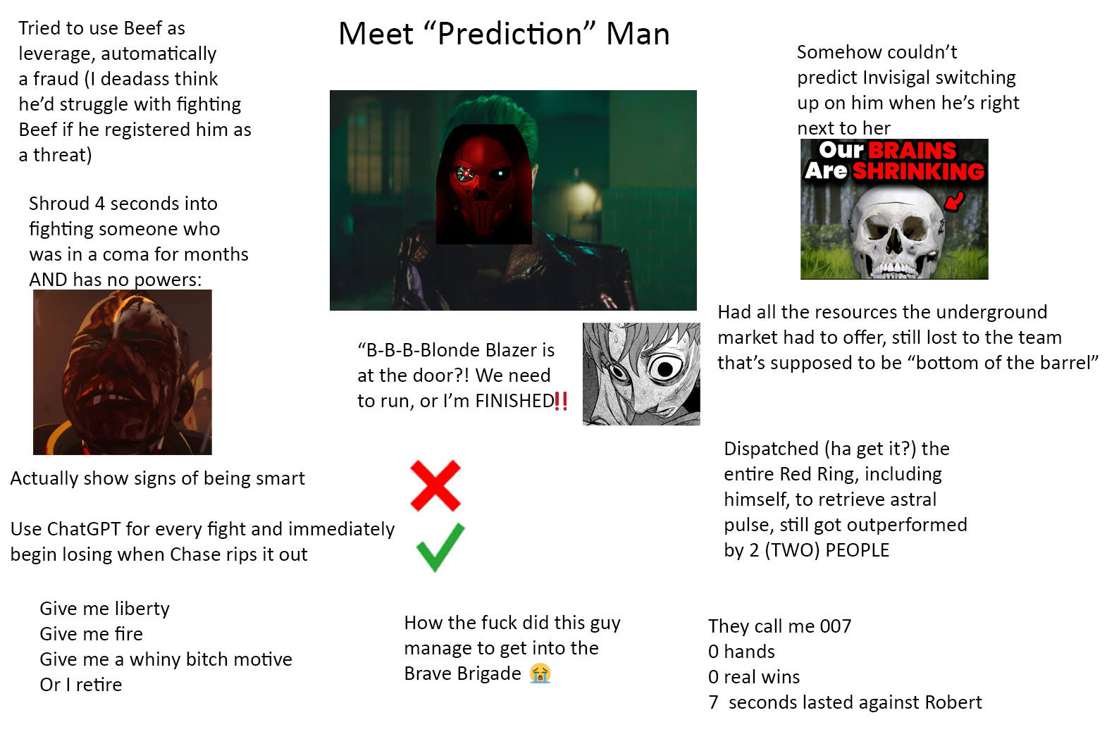 >своей воли у неё нет У неё настолько нет своей воли, что она готова от импланта, исцеляющего её от астмы отказаться в пользу "добра". У неё настолько нет своей воли, что она готова открытый хейт в свой адрес терпеть в качестве награды, чтобы быть в Шторм-Z, в то время как у Шрауда её хотя бы рабочий имплант светит. Слабейшая сила воли во Вселенной.