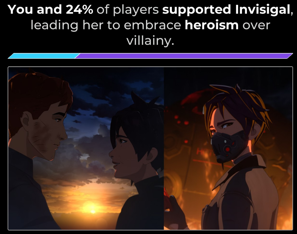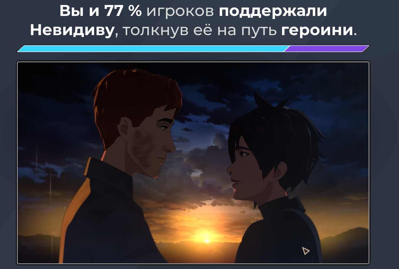 Надеюсь во втором сезоне наконец-таки дадут подкатить к демонихе, при условии если в первом остался форевер алоуном. И на различия между геройским/злодейским романом с Невидивой интересно бы глянуть. Жаль что с большой вероятностью повторить вин уже не выйдет, но бум верить в лучшее.