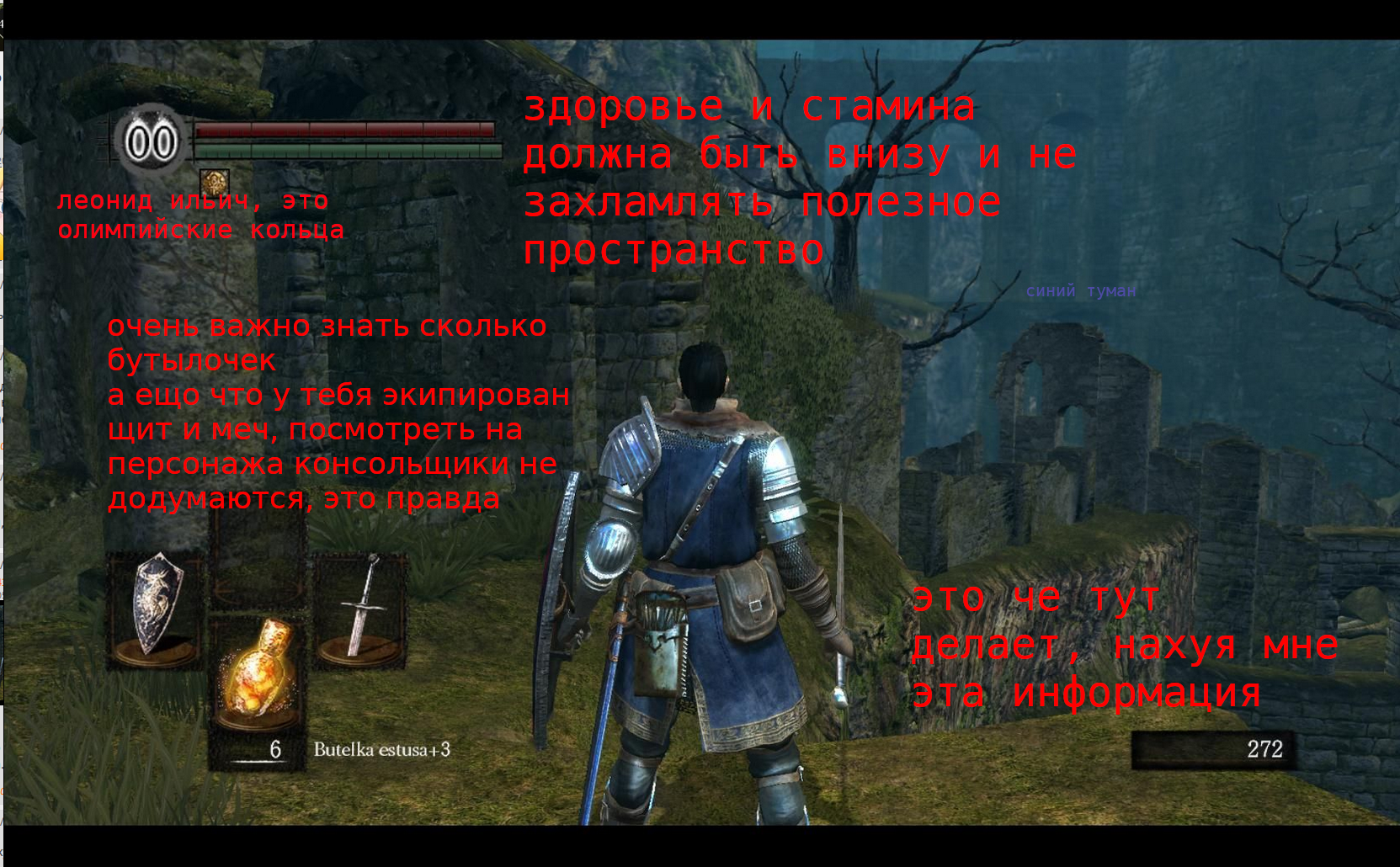Помню кто-то в твитторе пукнул, что UI хуйня для даунов и не нужен. И тогда на этот твит порвались куча игровых UI дизайнеров, что какого хуя, их работа всей жизни чтоли ненужна и хуйня полная, это получается они не нужны штоле. Представляю какой же титанический труд проворачивают месяцами эти UI дизайнеры, чтобы расположить 4 квадратика покрасивше, и рамку в пейнте нарисовать чуть более по другому чем уже было в десятке игр до, а еще решить внизу стамину показывать или вверху, без дополнительного оплачиваемого исследования не разобраться. Игрок ведь не догадается что он в руке держит, если это не показать иконкой. Жизни иконок важны!