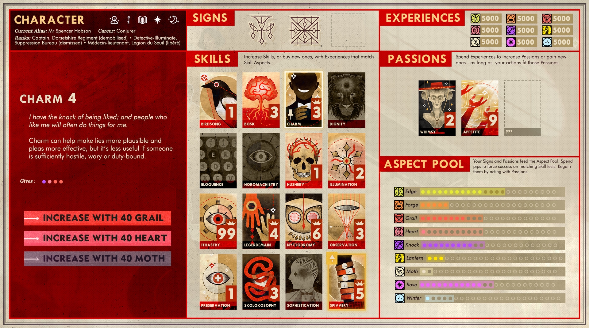 Вот, что такое стильные панели. Будущая игора создателя Симулятора Культиста и Бук Оф Хоурс. Он решил свой Диско Элизиум в своей вселенной запилить. Вот это свеговые панели скиллов и прокачки. Сразу видно, что у автора чувство вкуса есть. За километр сразу видно, что игора дип изотерик булщит.