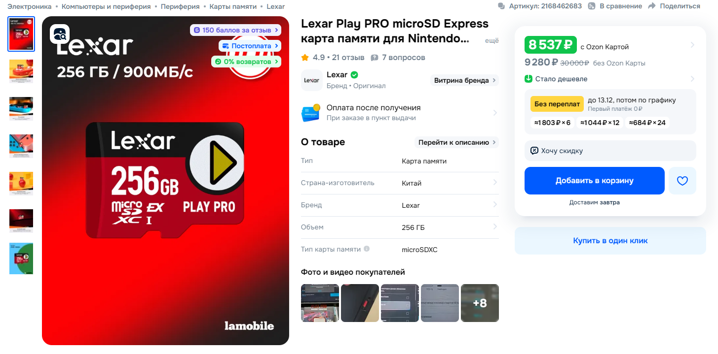 >>9910073 >Нахуя ты мне вообще показываешь 256гб если у свичовых кариков официальный потолок в 64гб. SD Express на 64 гига просто не бывает, поэтому нечего тебе скинуть. Вот есть на 256, дели цену на 4 и прикидывай, сколько карик стоит >Вот тебе реальные цены из Китая, от Китайцев и для Китайцев. И че мне с этой ценой делать? Эта карта на втором свитче даже работать не будет, потому что это не SD Express, а SDXC. Она уже старая и медленная. Это не релевантно. Дорогие именно карты SD Express, потому что там скорость как у SSD полноценных.