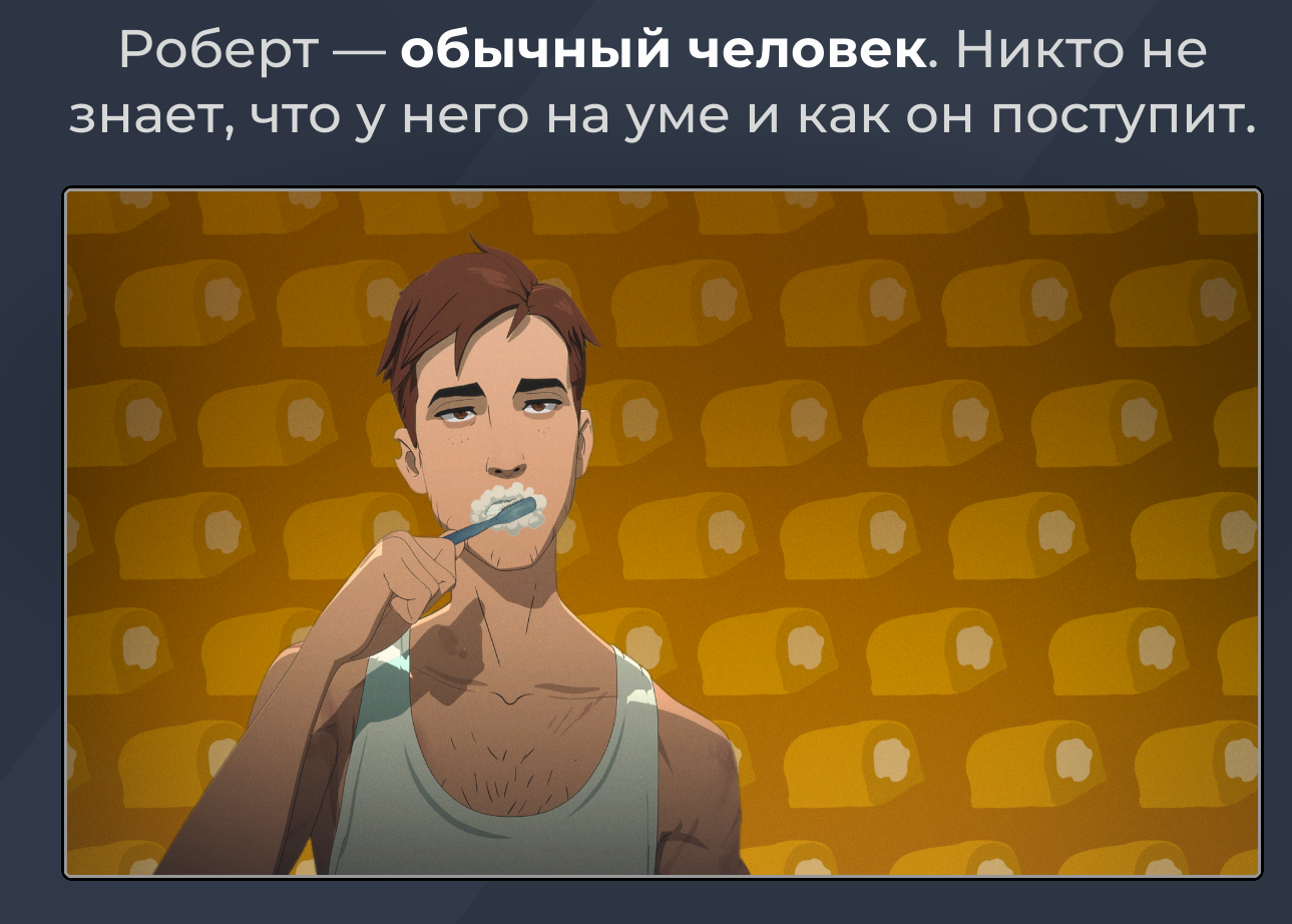 Вот в обсуждениях много пишут какая блонда хитрая манипуляторша и как она чужими руками жар загребает, но почему то никогда про то, что без неё Роберт остался бы лежать в начале игры с пробитой башкой, или в лучшем случае спивался бы, а так у него с нихуя руководящая должность, отборнейший сисик-писик под рукой и ресурсы целой организации уходят на восстановление его мехамена. Ах да, гопников тех блонда же подослала, били они специально не в полную силу и забрасывание последнего на крышу тоже было обговорено за дополнительную плату.