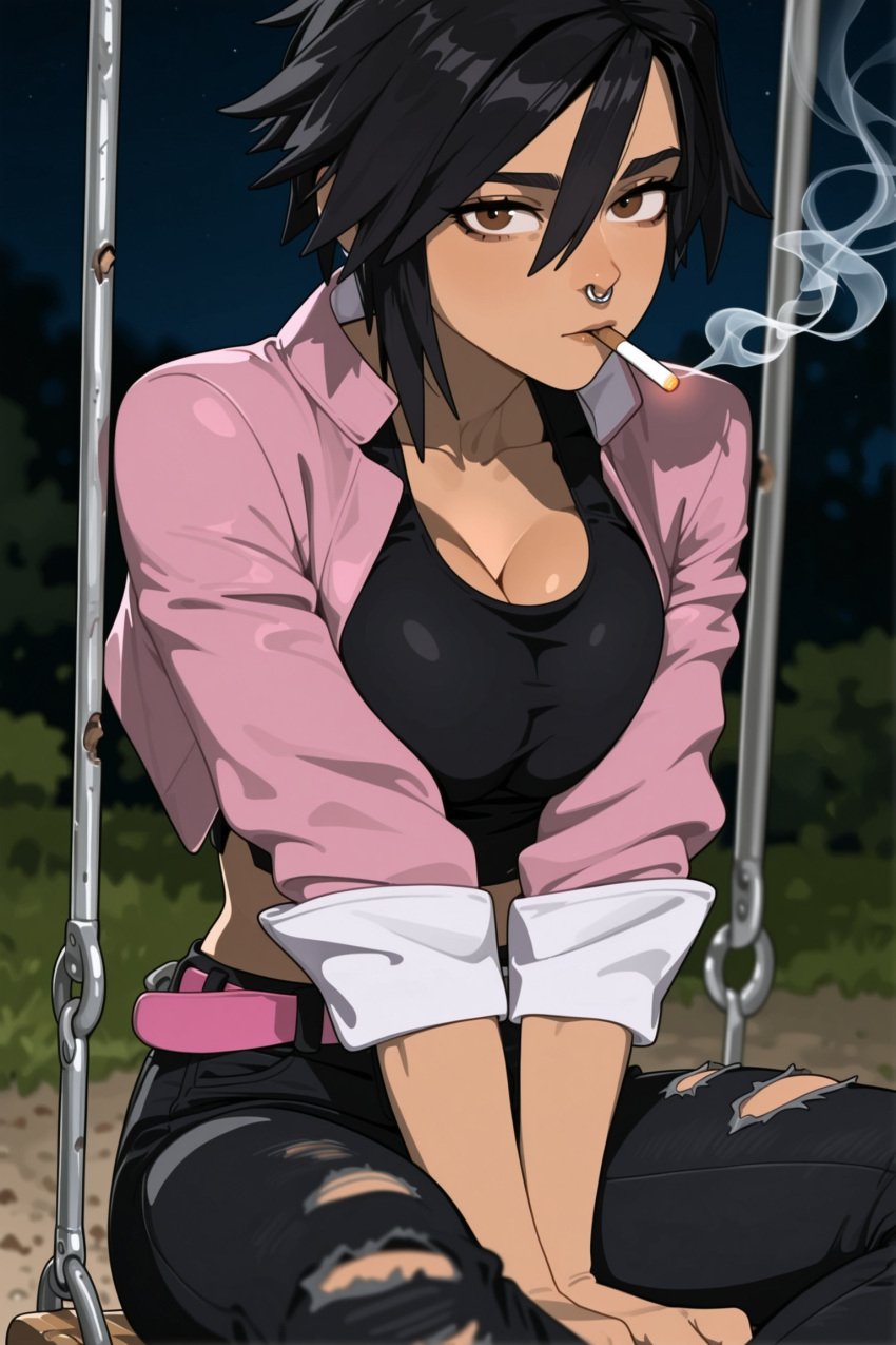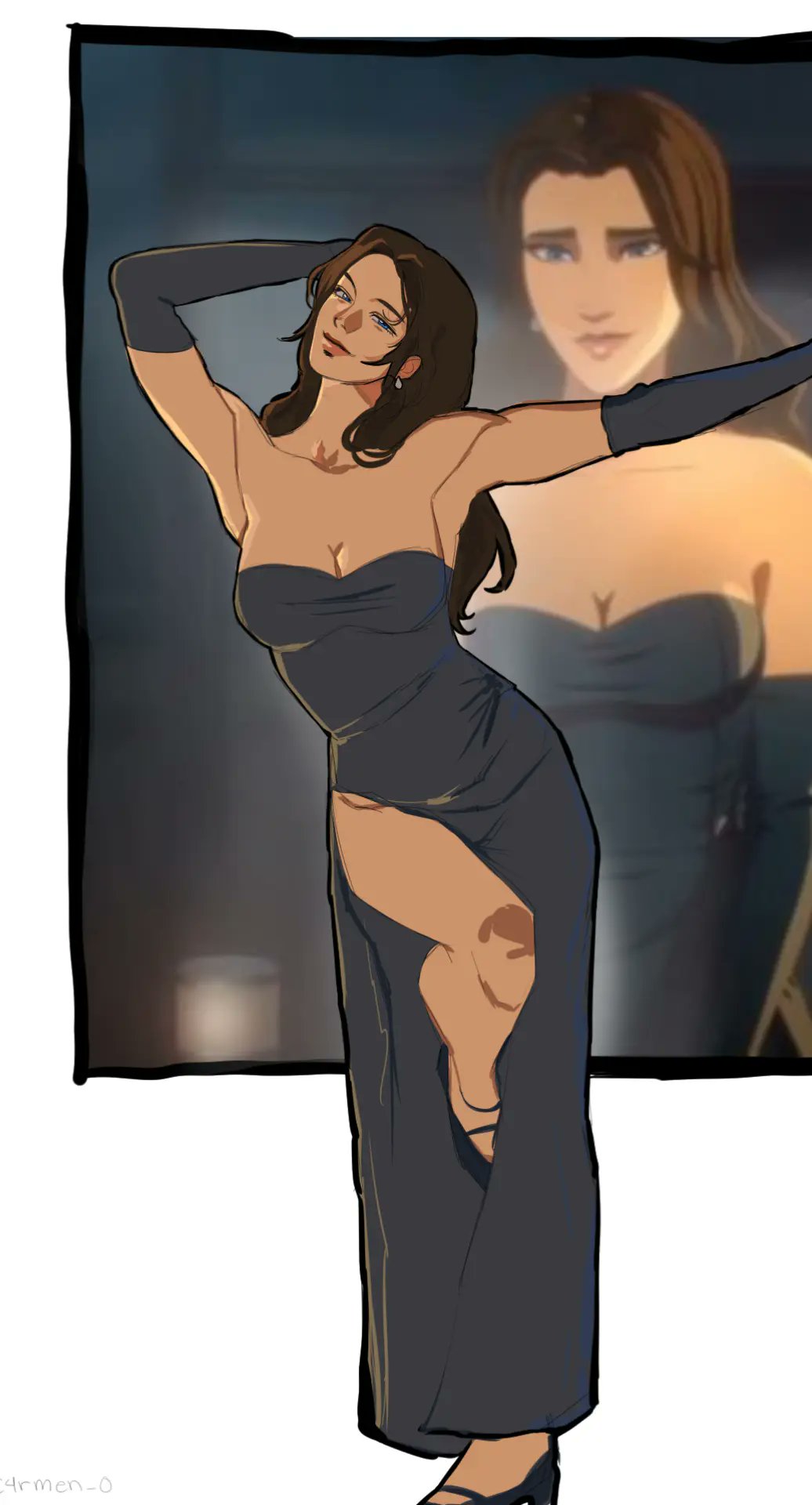 Роберт хватает Блейзер за ягодицы и резко притягивает к себе. Её дыхание горячее, лицо всё ещё в крови врагов. — Сними это, — говорит он, касаясь медальона. Она лишь улыбается уголком губ: — Попробуй. Медальон щёлкает — и она становится собой. Ни героизма, ни маски. Только Мэнди. Живая. Опасная. Ростом меньше, но грудь все также большого размера, а соски напряжены от волнения. Он прижимает её к бетону, снимает с неё всю одежду, их губы сталкиваются так, будто оба пытаются вырвать друг у друга воздух. Она цепляется в его плечи, выгибаясь навстречу, постанывая шепча ему в ухо низким, хриплым голосом: