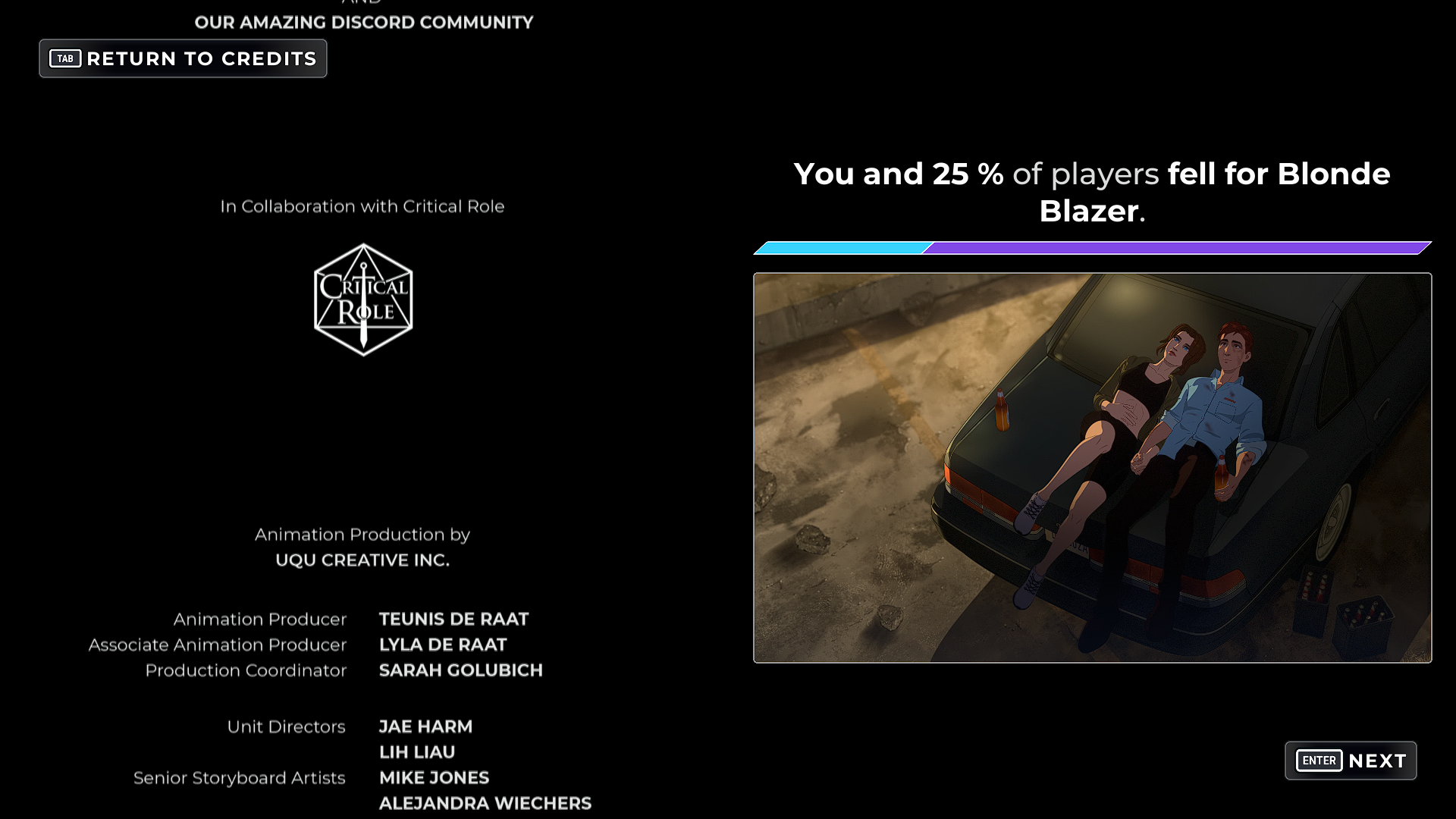 Нахуй вообще копротивляться за блондинку, когда у Роберта и Битчи просто химия лучше? Герой всё проебавший и переметнувшаяся злодейка, ляпота. Про то что у блейзы дай бог 30 минут экранного времени за всю игру (40 если пойти с ней на ужин) я вообще молчу.