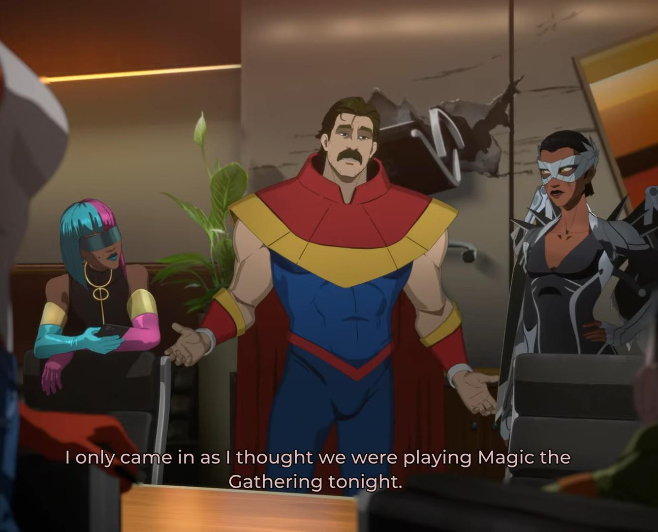 ББ — это буквально эффективный менеджер, неспособный в долгосрочное планирование и стратегию. Ей вообще не место на её должности, она очень тупая: Мыслит квартальными отчетами, концепцией DEI, а не выполнением реальных задач. Её план имел смысл только в ее соевых представлениях и провалился столкнувшись с реальностю. Был момент когда она подменяет Роберта на смене и там прекрасно видно, что она вообще не понимает чем должны заниматься супергерои, напоминаю, она там сидит на руководящей должности. Пока вы пытаетесь обвинять всяких мелких героев-пешек в предательстве нужно учитывать, что без расточительства ББ не было бы и половины проблем, а без Роберта бы всё вообще развалилось. То, что Мехамен потерял свой мех оказалось выгодным именно Блонд Блейзер, ведь он фиксит её фейлы и именно поэтому она его так и ценит и пытается привязать к себе отношениями, не потому что она его любит, а потому что он ей ценен как подтиратель её жопы. Раньше для этого был у неё Феноменомэн, но она разглядела больший потенциал в Роберте поэтому происходит попытка пересесть с одного мпх на другой, это так называемое приспособленчество.Так же из комикса так же можно увидеть, что ей вообще ничего не хочется, ей неинтересна супергероика, ей хочется просто лежать на диване и смотреть телевизор.
