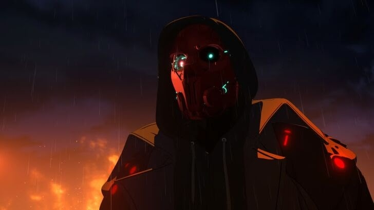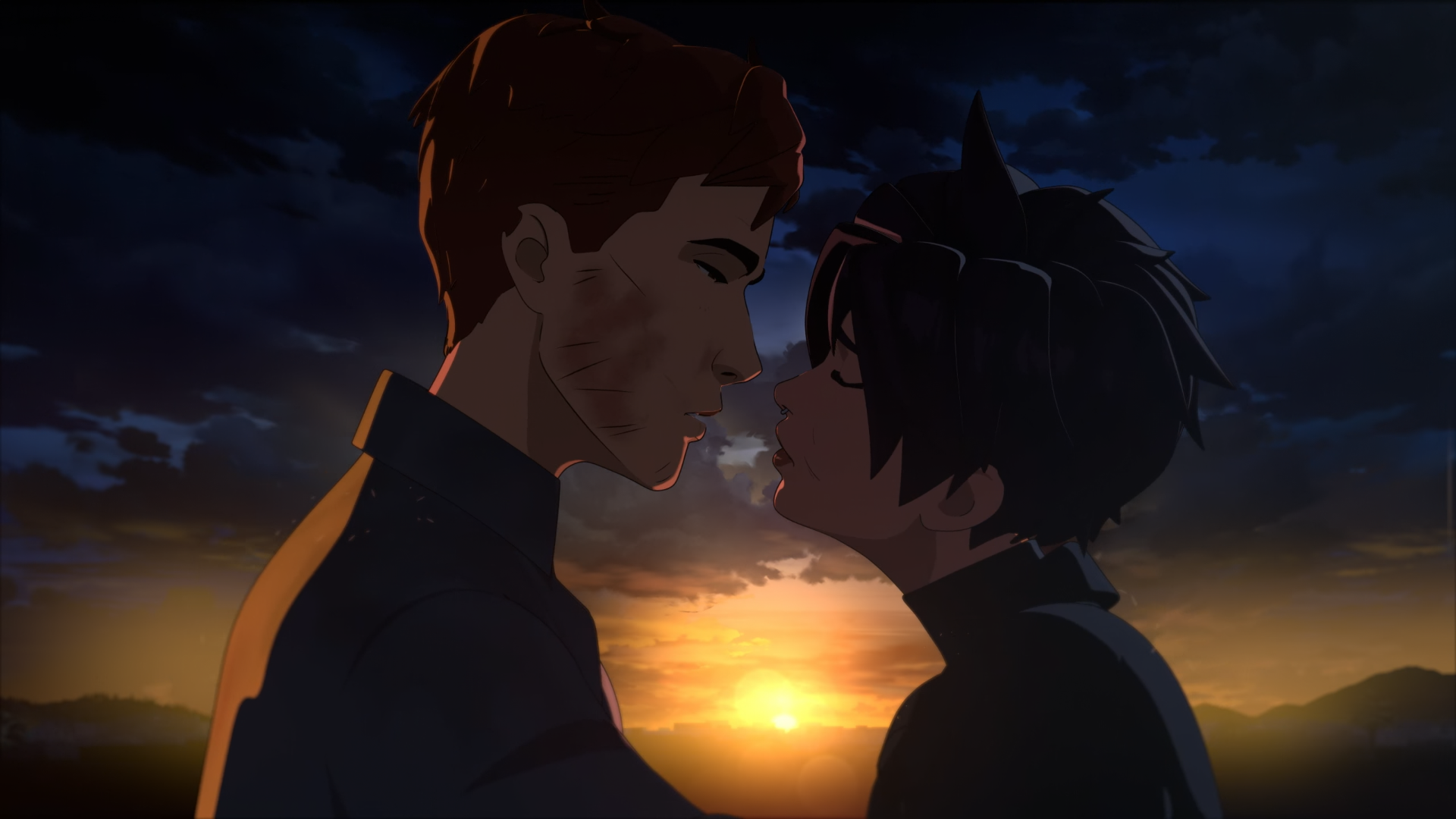 Они целуются на фоне крови и дыма; Блейзер подхватывает его на руки, и они улетают в ночное небо под музыку Billie Eilish. Конец.